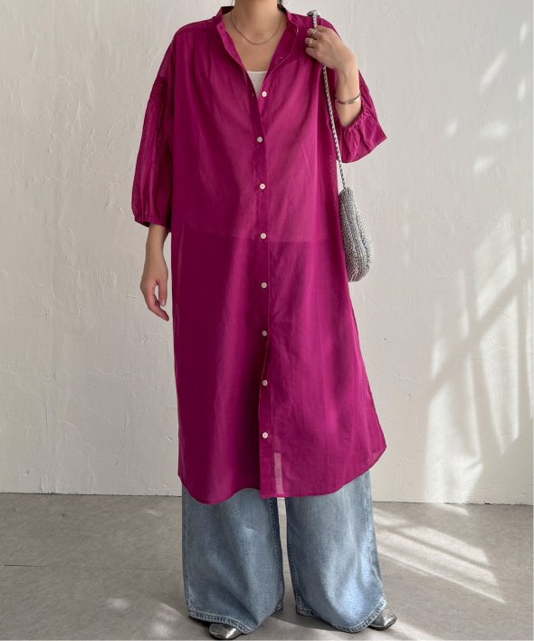 軽い素材感なので濃い差し色も着やすいです。