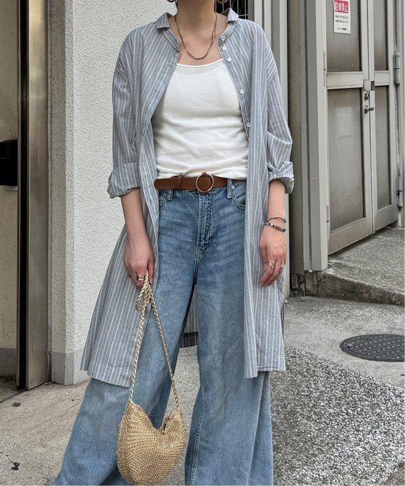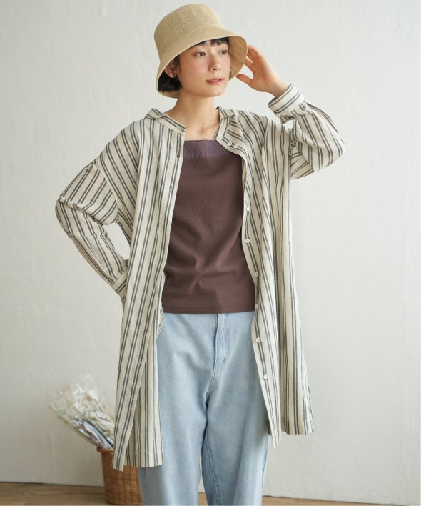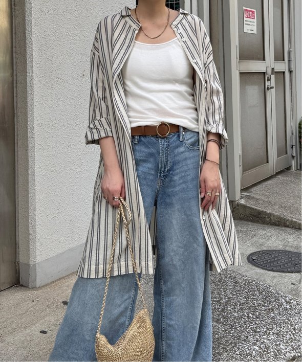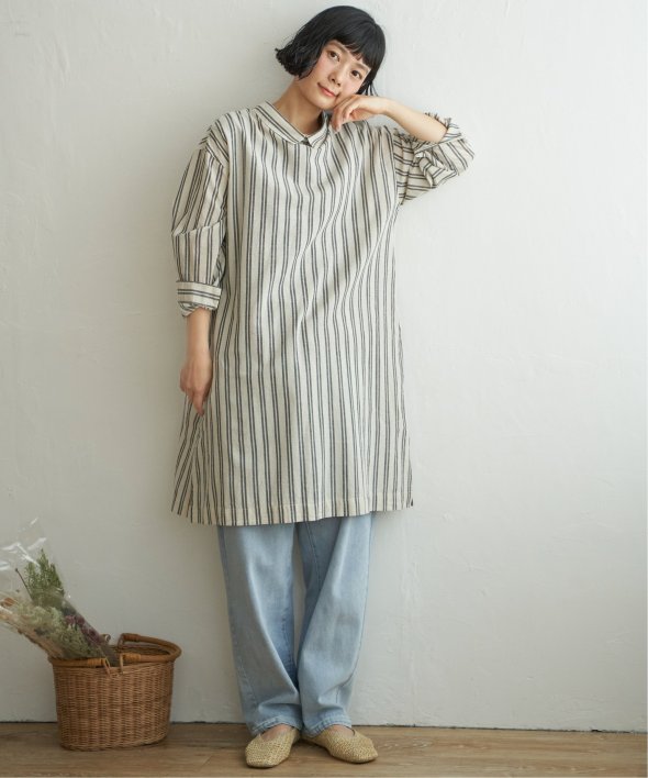 ストライプ柄は縦見えですっきりみせてくれます。