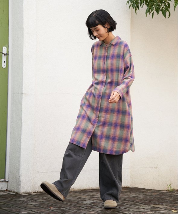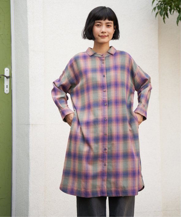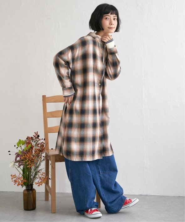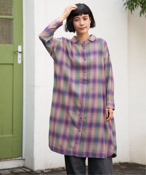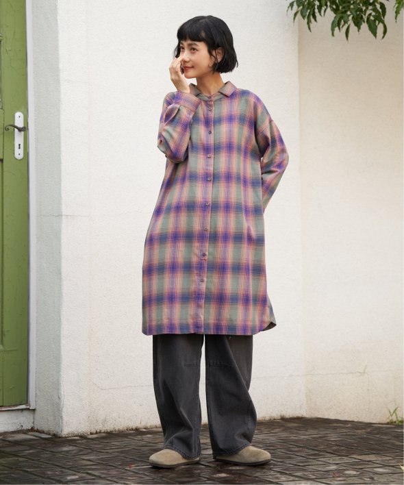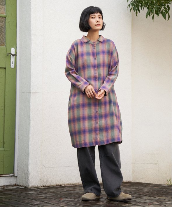 前後どちらを前にしても着られるチェック柄ワンピース。さらに羽織りとしても使えるため、季節の変わり目や幅広いシーンで活躍します。一枚で多彩な着こなしを楽しめる万能アイテム。【素材】綿100%【デザイン】前後着用+羽織りの3WAYデザイン。【ポイント】秋らしいチェック柄が印象的な、羽織りとしても重宝するアイテムです。細かな線と絶妙な配色で織りなすチェック柄はLBCオリジナル。 [洗濯方法]洗濯の際はネットを使用してください