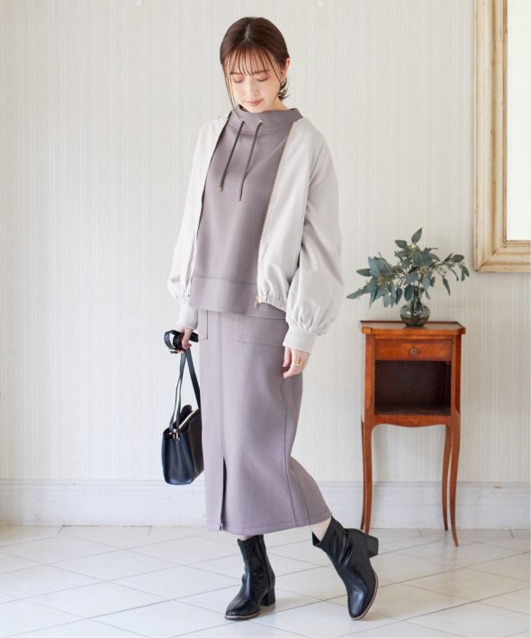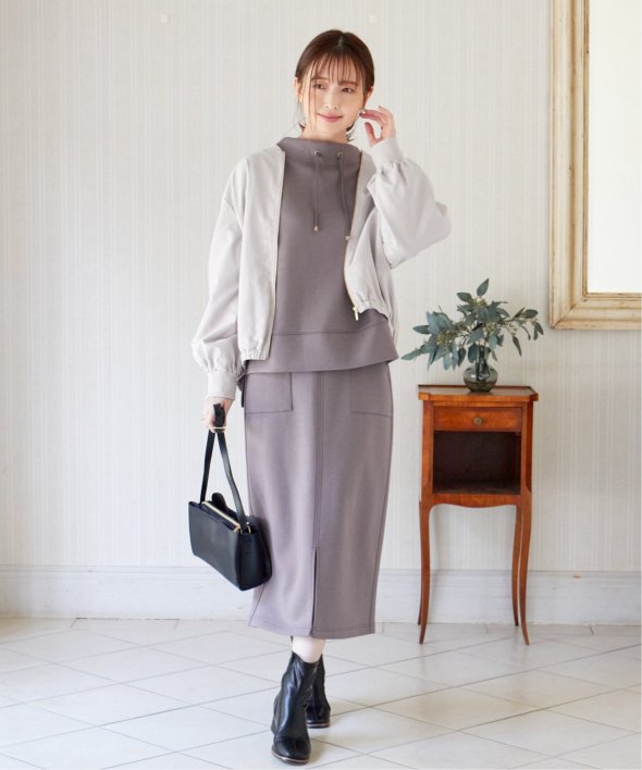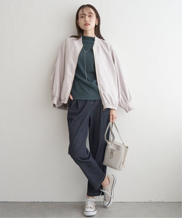 なめらかな起毛素材を使用したリブブルゾン。カジュアルになり過ぎることなく、上品さを保ちながら着用していただけます。きれいめカジュアルの代表格な端境期のブルゾン【素材】ピーチ起毛(微起毛)の合繊素材を使用することで、ソフトな印象になり秋冬らしくあたたかく着こなしていただけます。【デザイン】衿と袖の華奢なリブ使いでのスポーティさを演出。首元はVネックになっているのでファスナーを閉めてもぬけ感がでます。ゴールド付属のファスナーとポケットのメタル使いがアクセントになっているので、カジュアルすぎずきれいめな印象になります。ダンボール素材やニットにも羽織れるゆったりとしたサイズ感なので、汎用性があります。【ikkaポイント】シンプルなデザインだからこそカラー展開にこだわっておりikkaらしい優しい色使いで、どんなスタイリングでも羽織るだけでやわらかな印象になります。季節の変わり目のお出かけシーンに重宝したいアイテムです。【おすすめコーディネート】お尻が半分ほど隠れるショート丈なので、ワンピースやワイドパンツなどボトムを選ばずお羽織いただけます。 [洗濯方法]洗濯の際はネットを使用してください