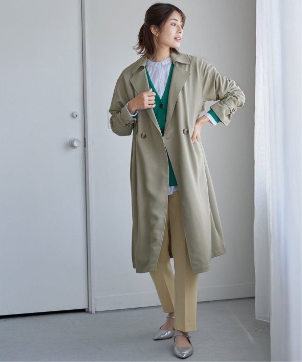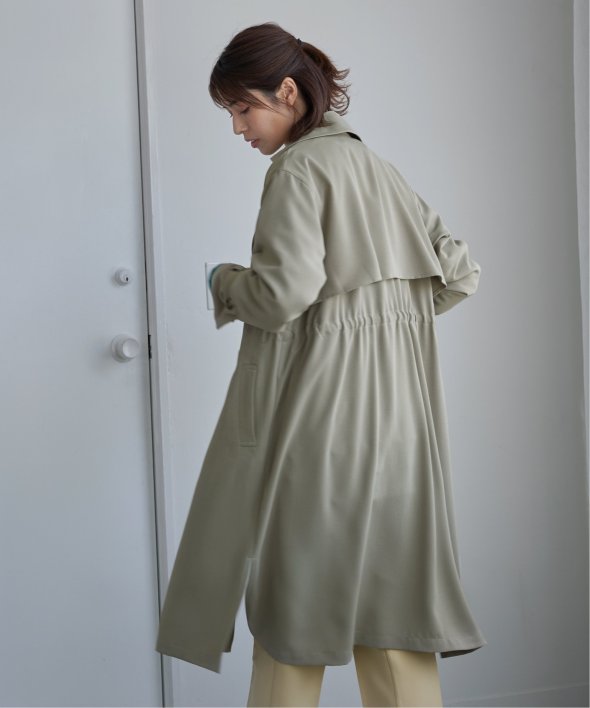 今期はボタンを4つから2つにして、すっきりとした大人トレンチコートを目指しました。