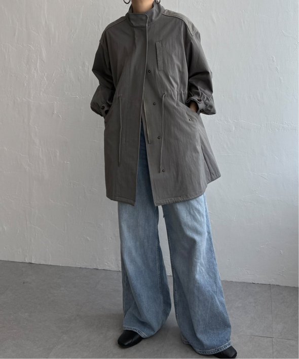 異素材切り替えが新鮮なモッズコート。