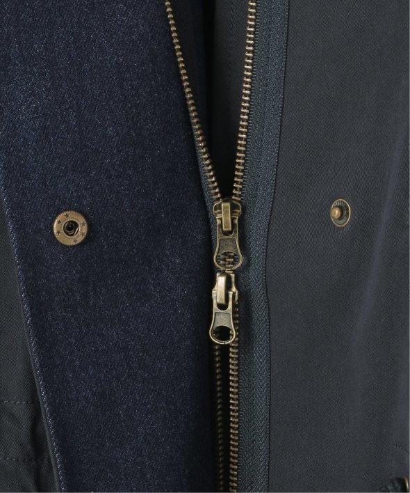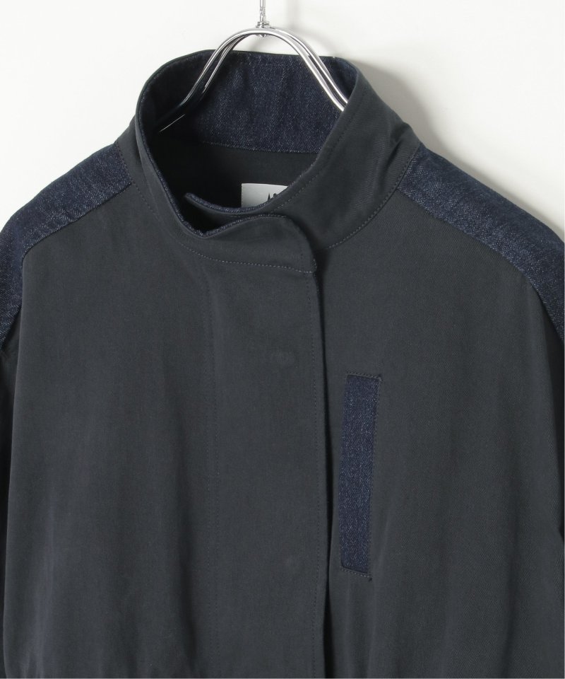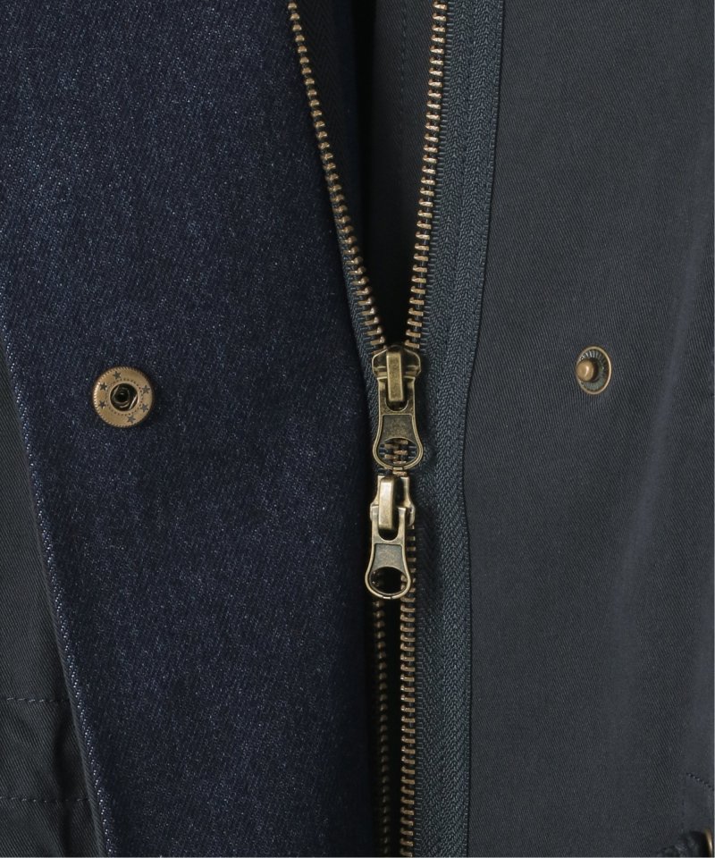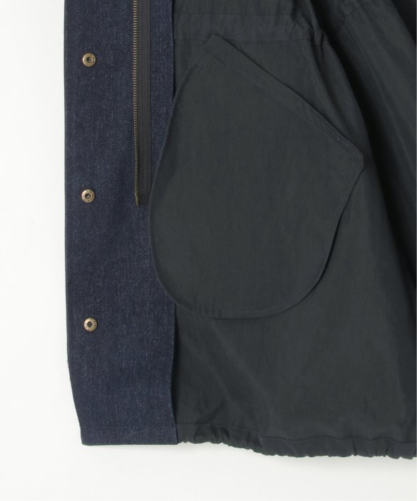 ワーク感ある綿ナイロンツイルとデニムの異素材切り替え。