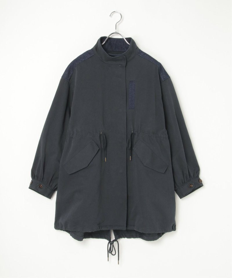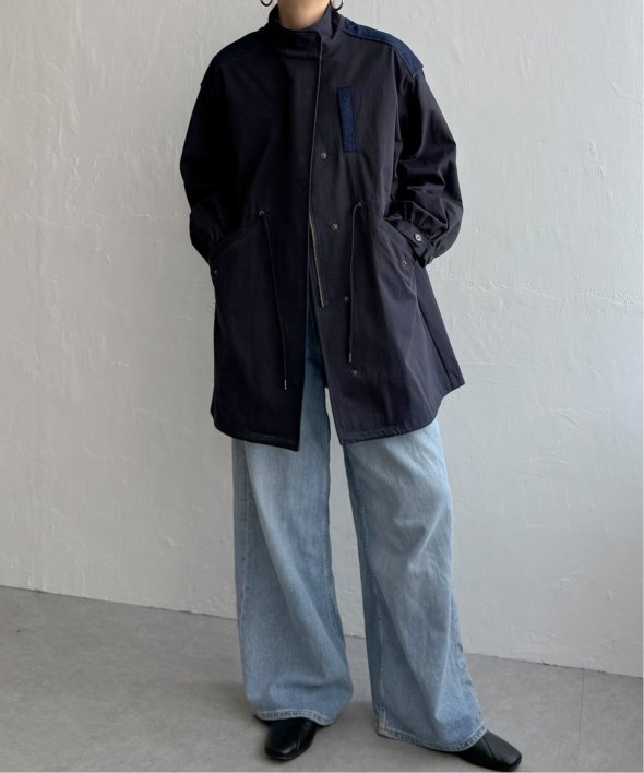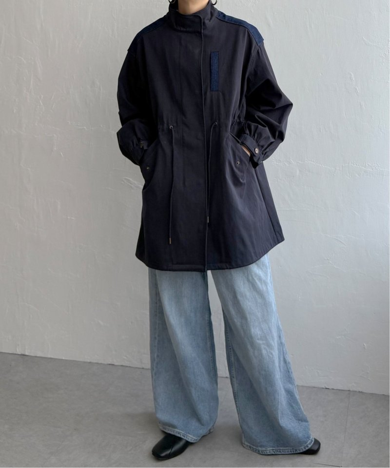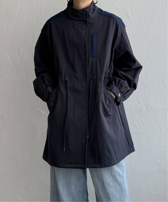 異素材の組み合わせが目を引く新顔アウター デニム切り替えモッズコート