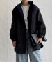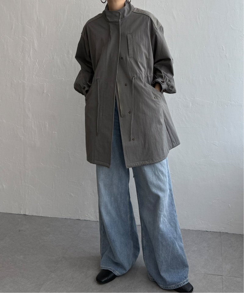 ミドル丈でゆったりシルエットのモッズコート。