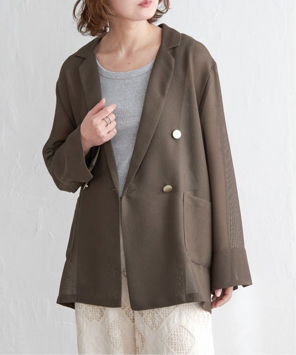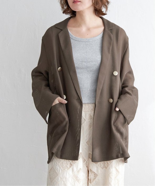 ハンサムなダブルブレストデザインに、軽やかなシアー素材を掛け合わせた大人のジャケット。
