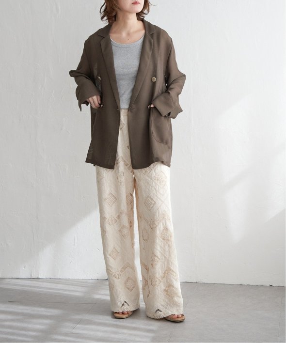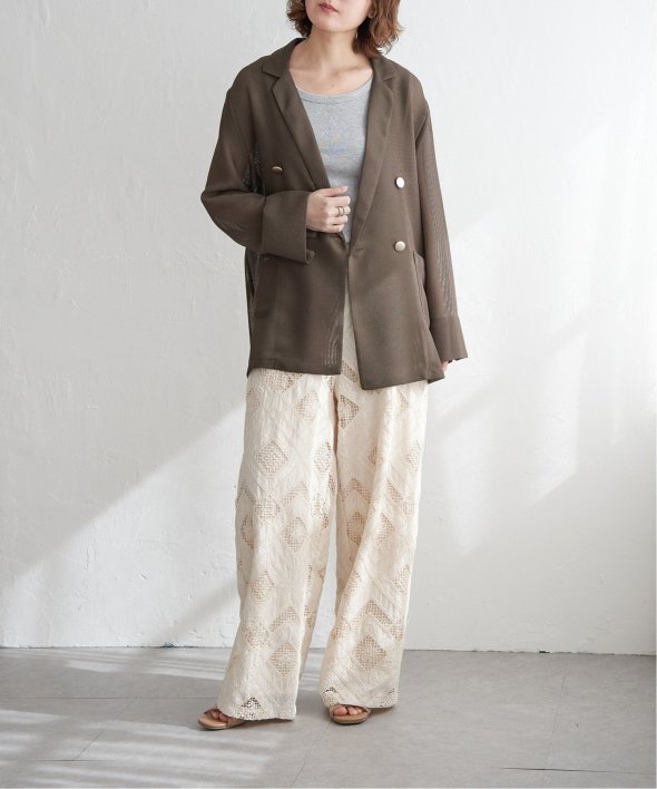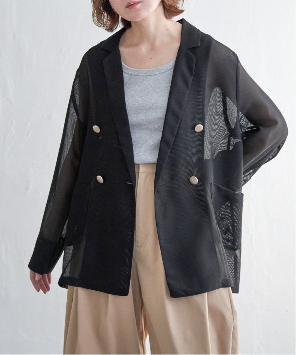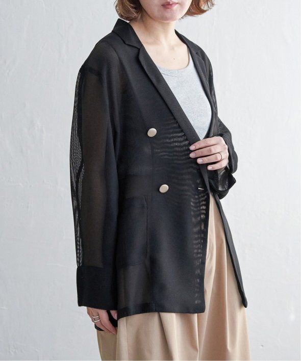 シアー素材とテーラーシルエットで洗練モード! 麻タッチシアーダブルテーラージャケット
