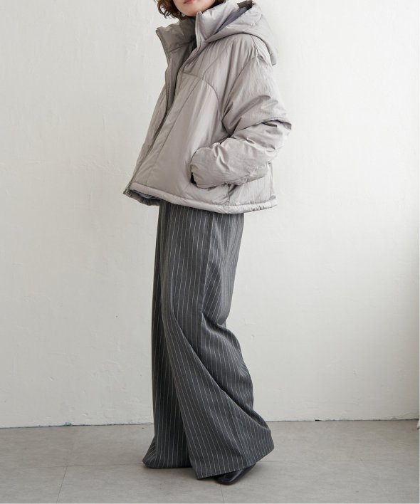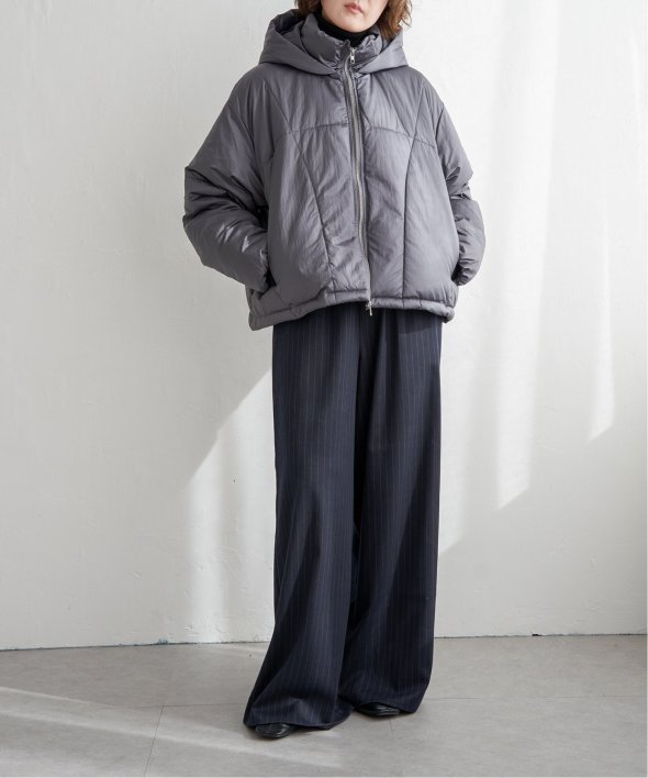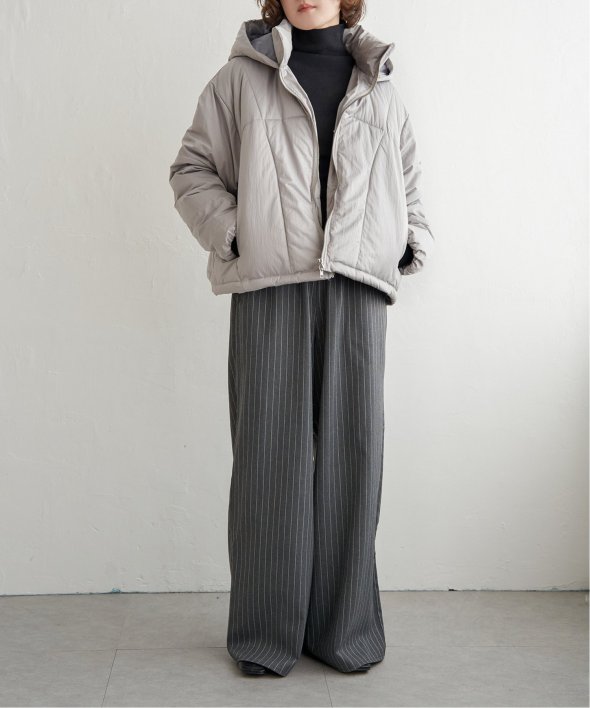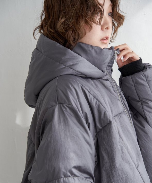 首元をあたたかく包み込むスタンドネック仕様に加え、フード付きで実用性も抜群です。