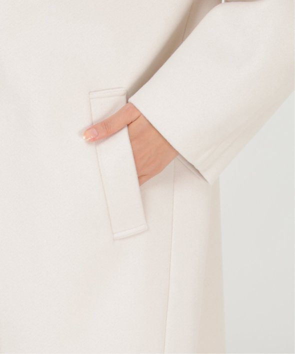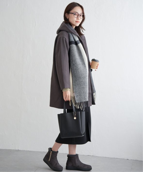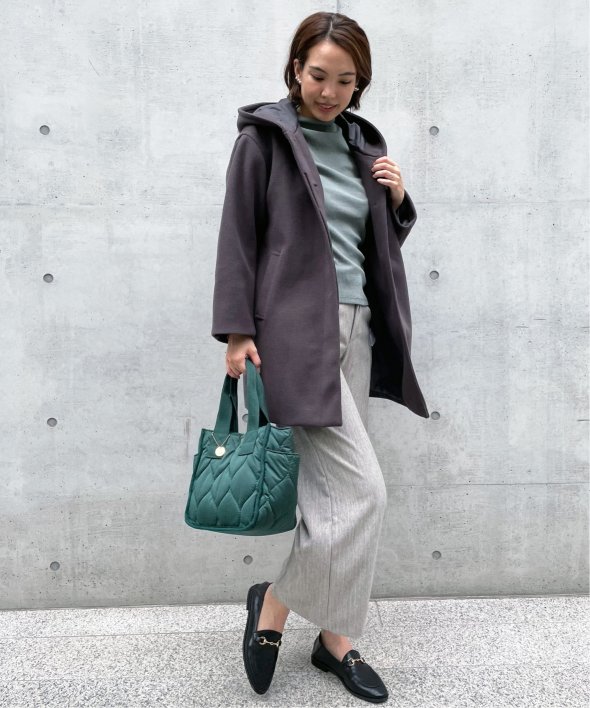 ほどよいボリューム感で下に大き目の身幅のニットを着ても肩にゆとりがあり、チュニック丈のニットでも下から出てこないミドル丈で着合わせしやすいコートを作りました。