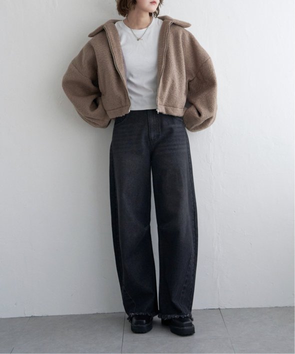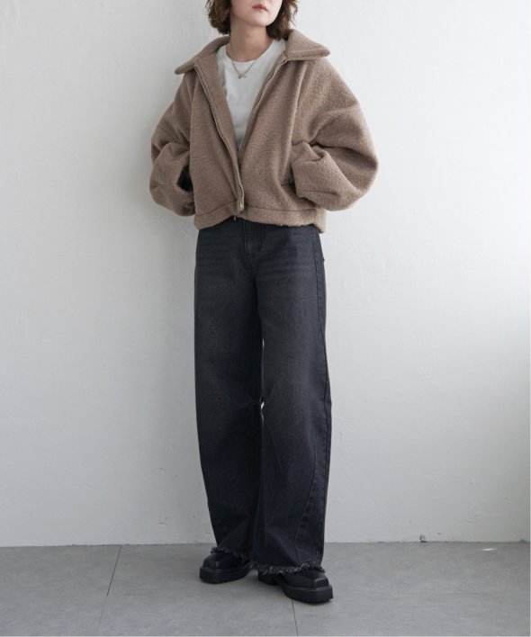 起毛感のある素材で暖かいシープボアジップジャケット!