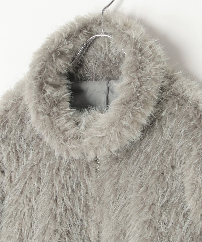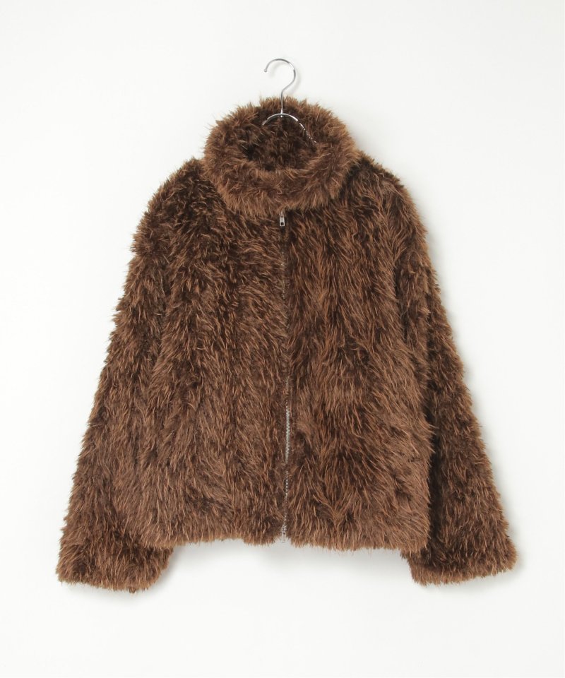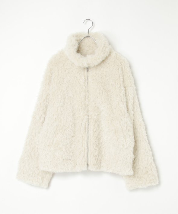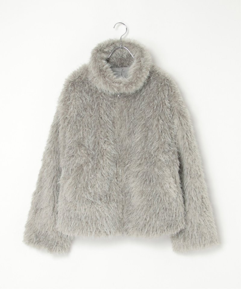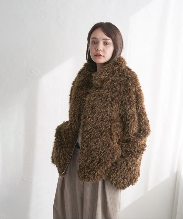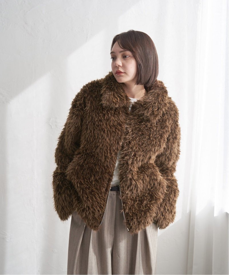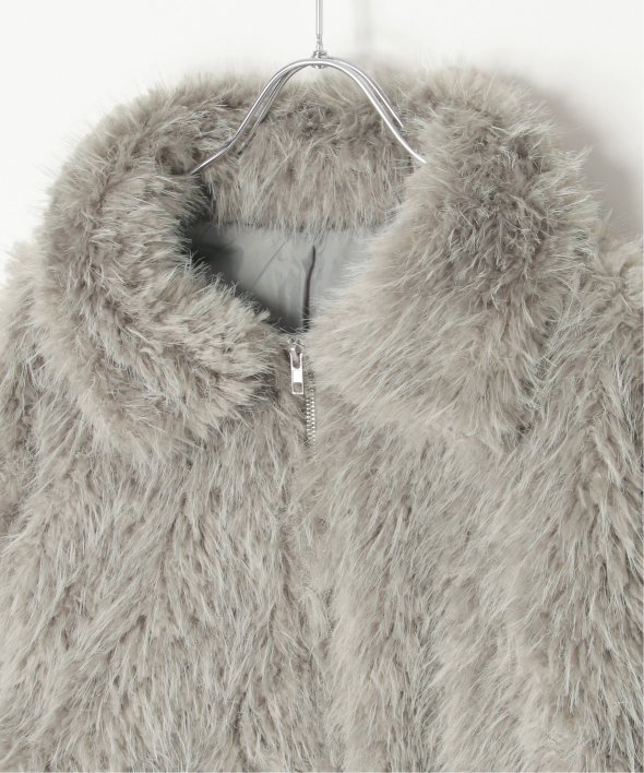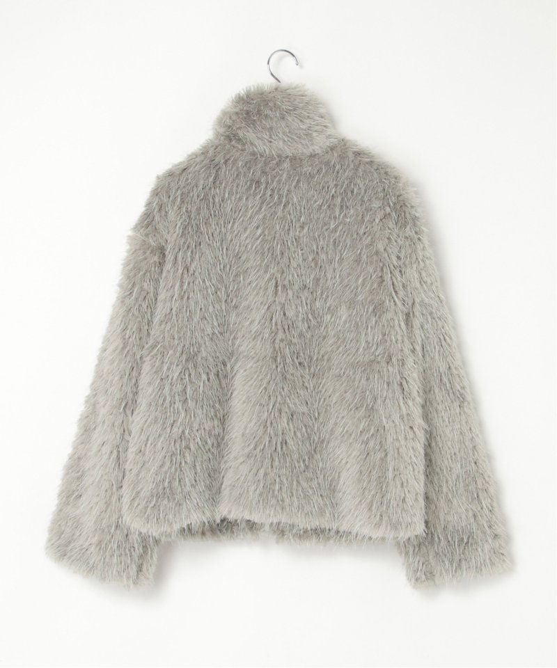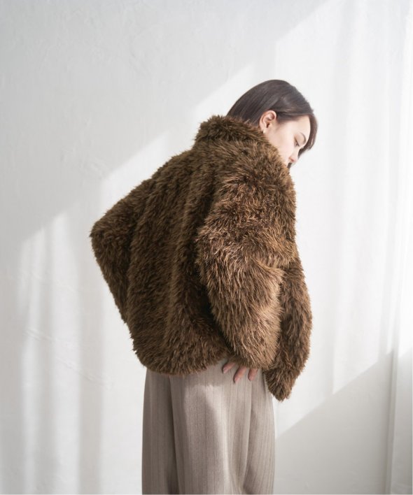 毛足の長いふさふさのフェイクファーが特徴のショート丈ジャケット。