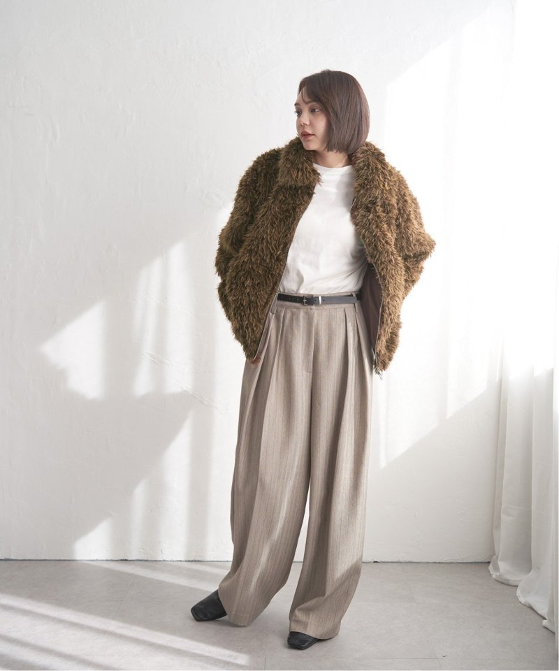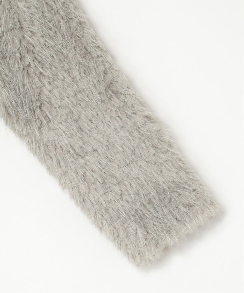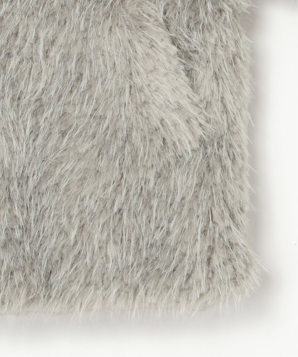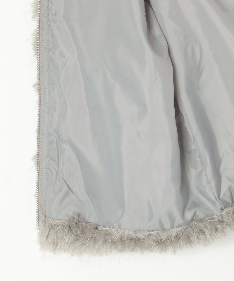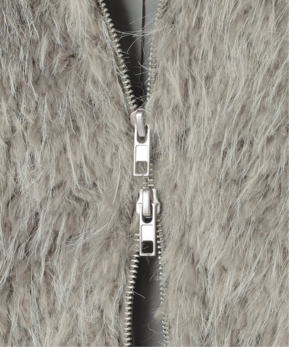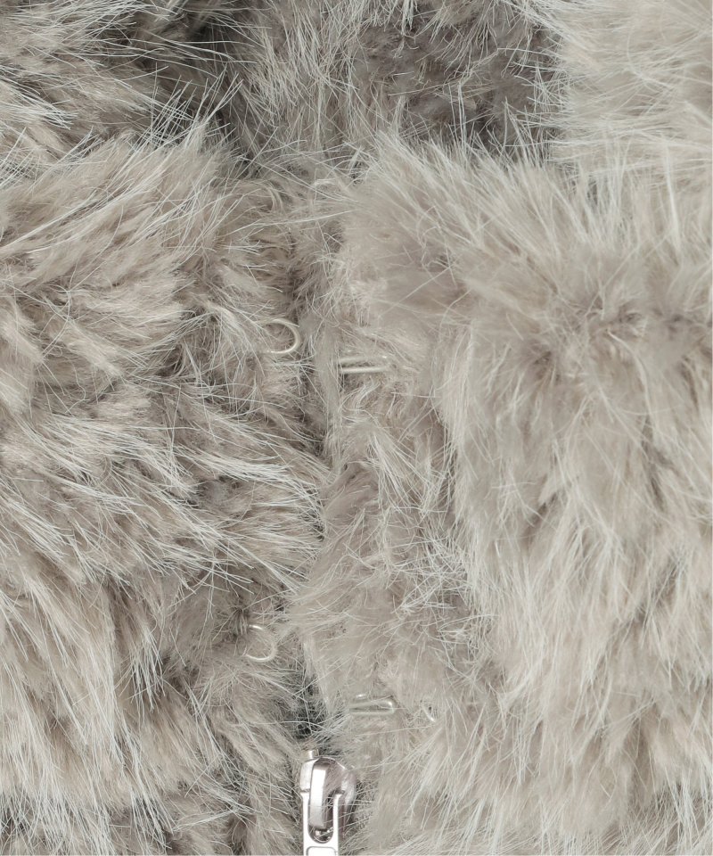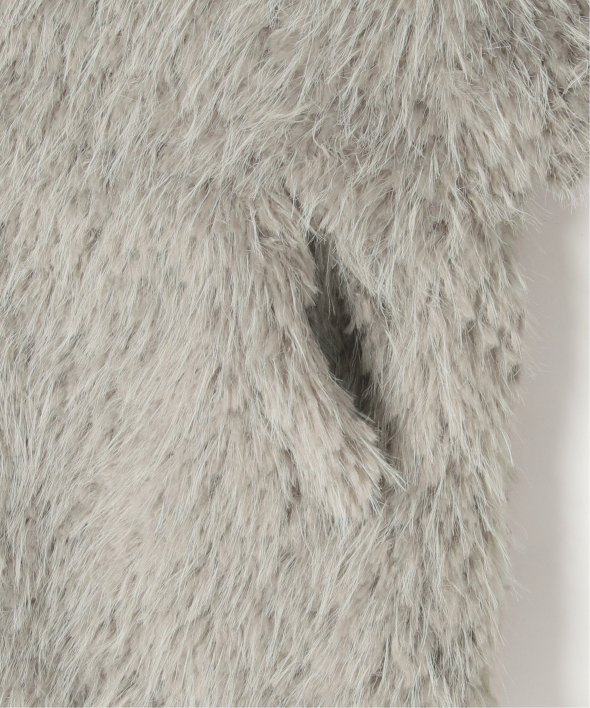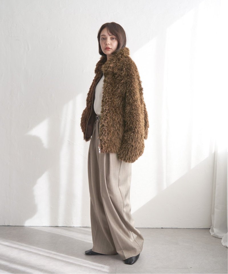 毛足の長いふさふさのフェイクファーが特徴のショート丈ジャケット。