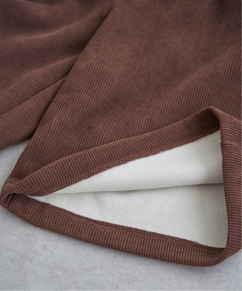 表地はコーデュロイ素材、裏地にはふんわりフリースを採用し、保温性と快適な肌触りを両立しました。