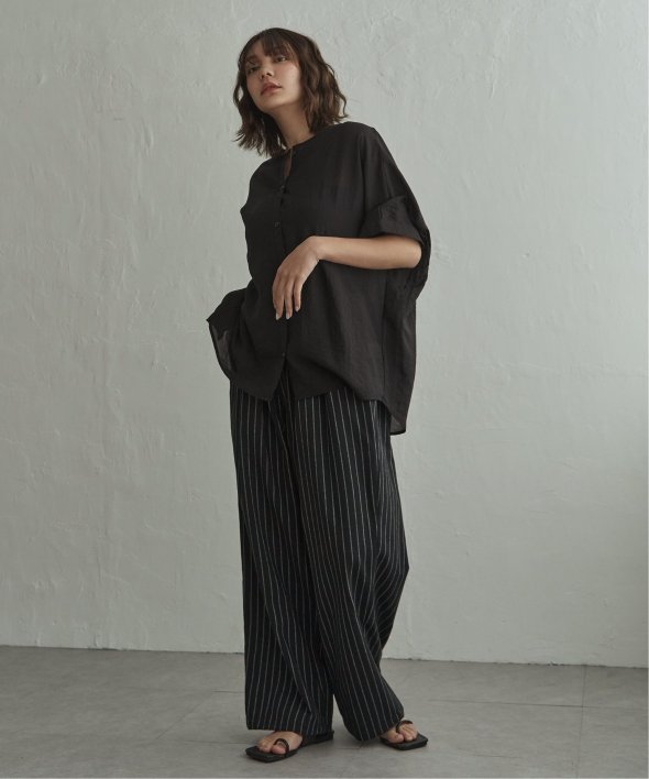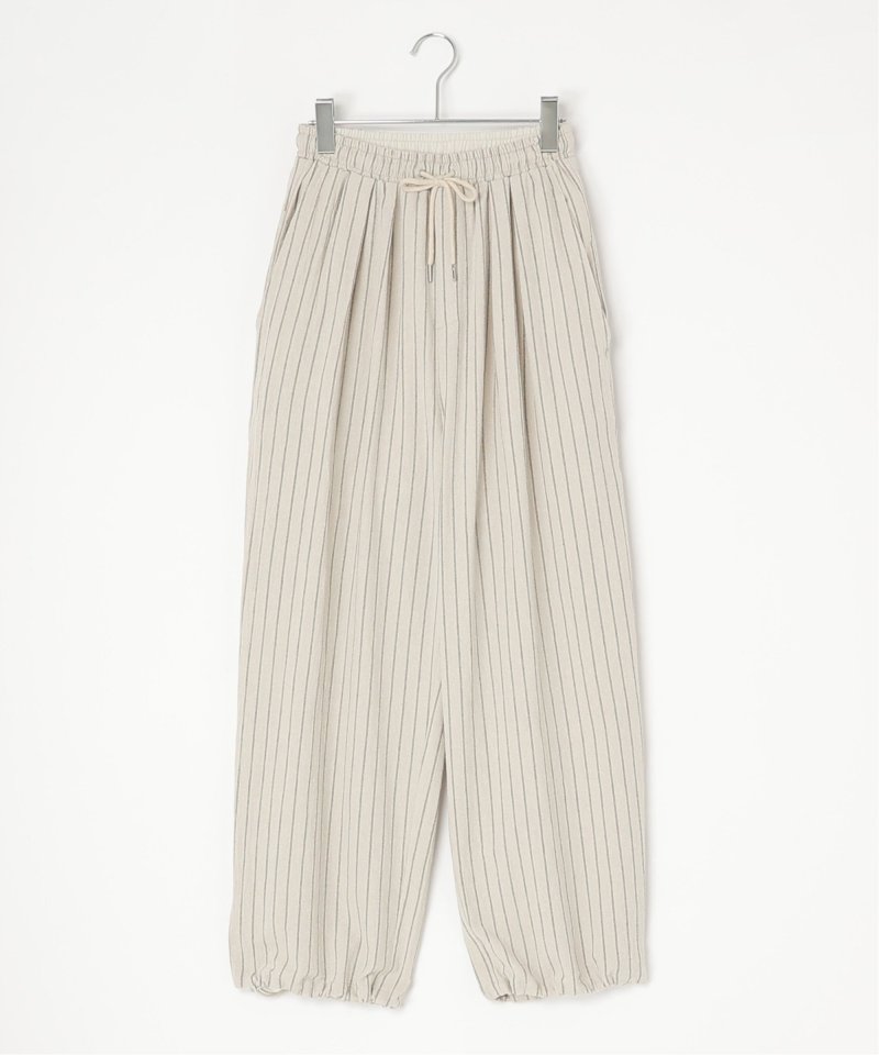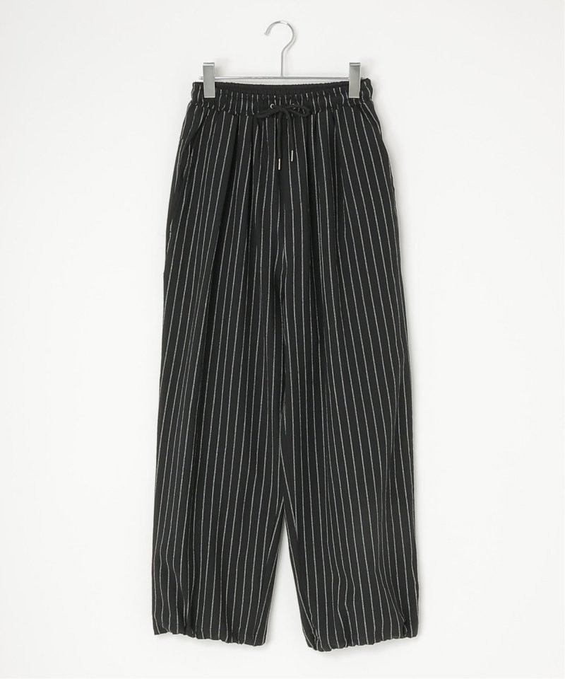 縦ラインを強調するストライプ柄が印象的なストライプタックイージーパンツ。