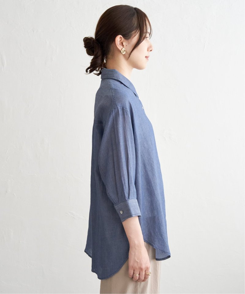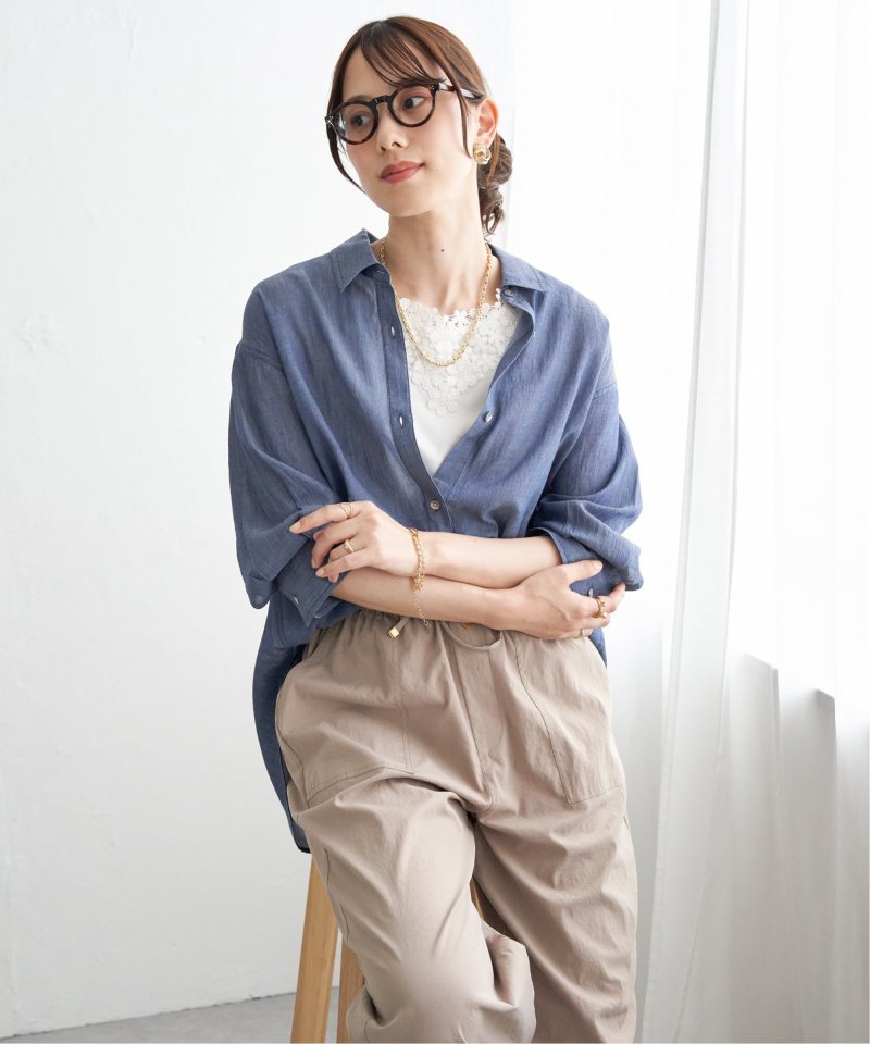 コットン100%で透け感のある薄地のデニム素材が新しい、トレンド感のある素材。