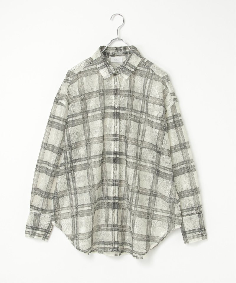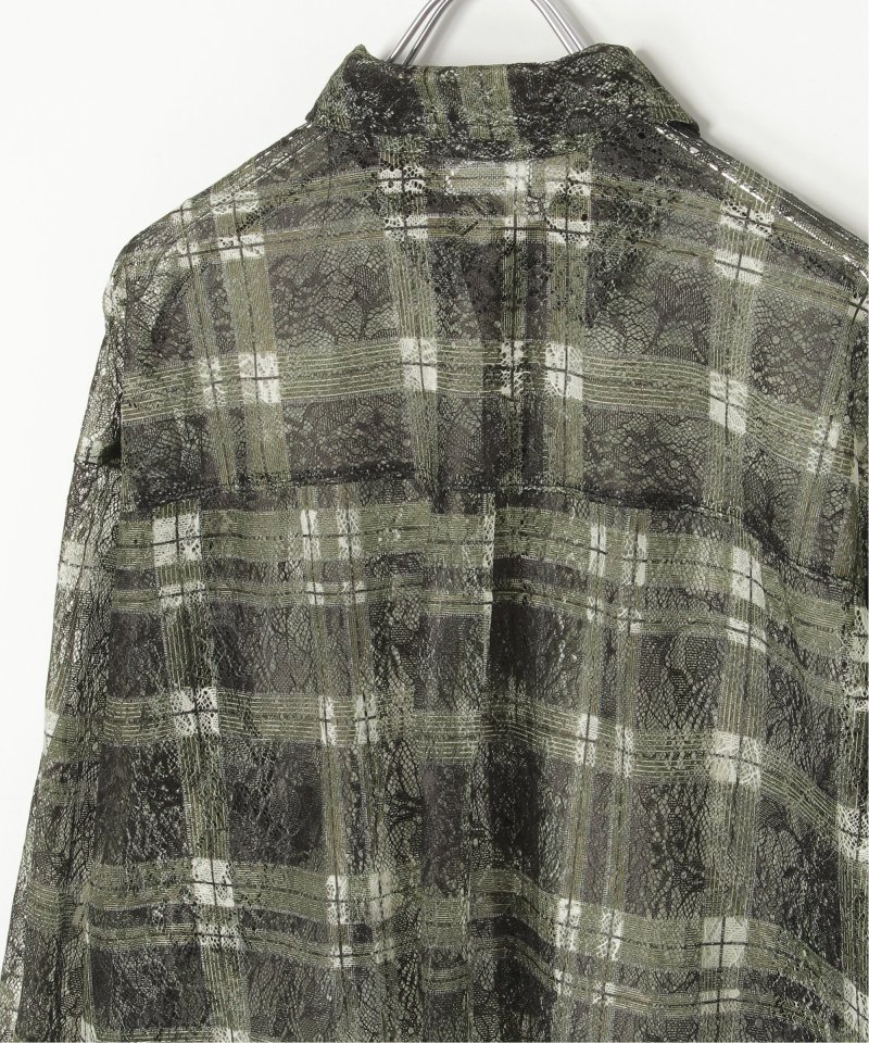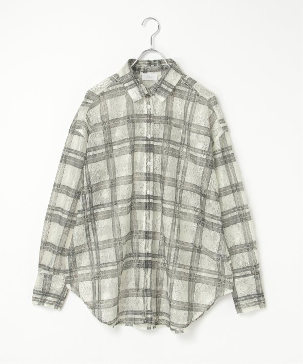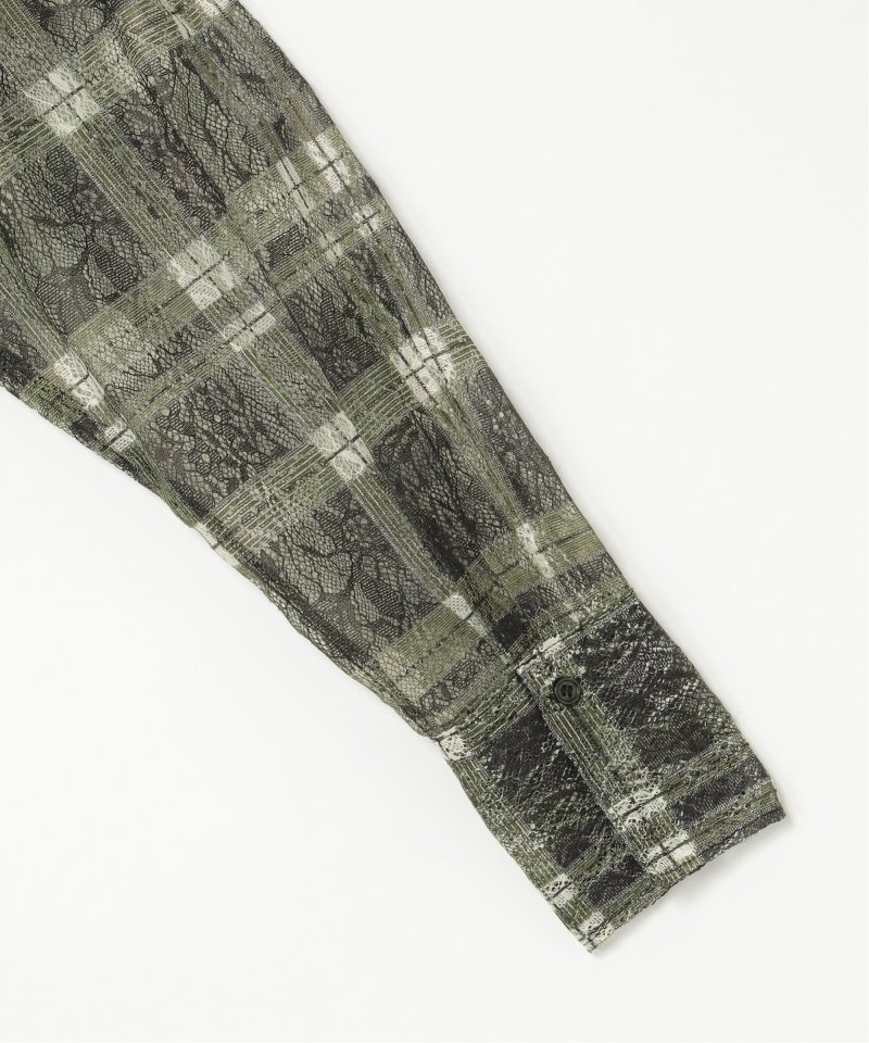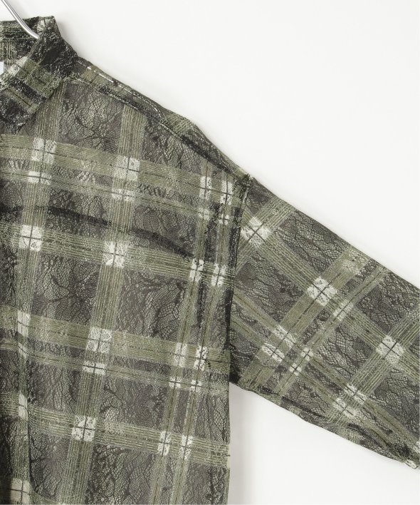 レースをプリントしたチェック柄が印象的なシャツ。