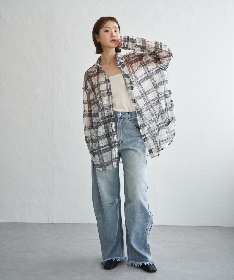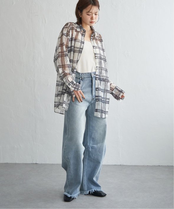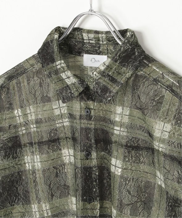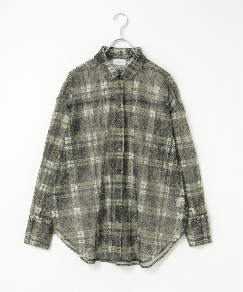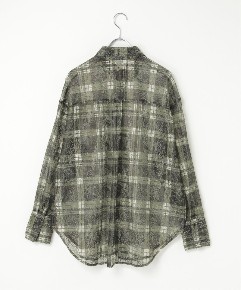 レースをプリントしたチェック柄が印象的なシャツ。