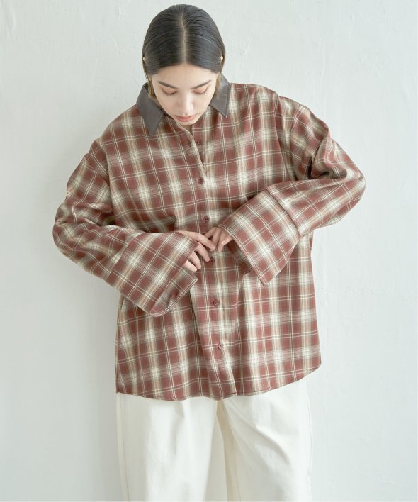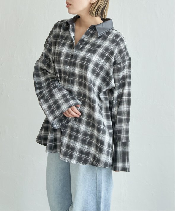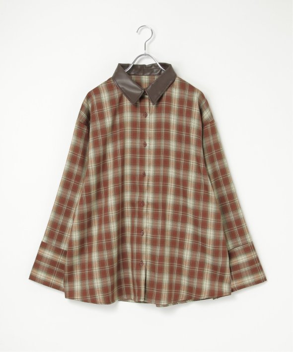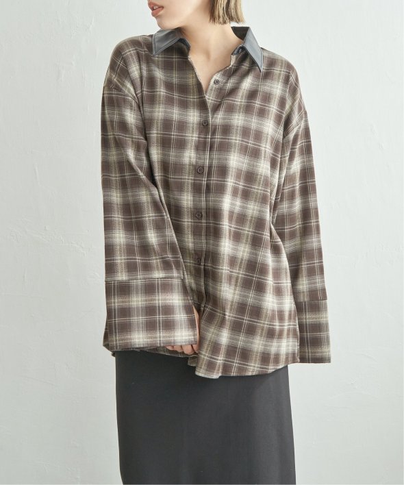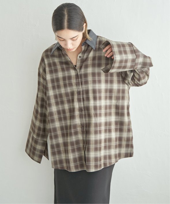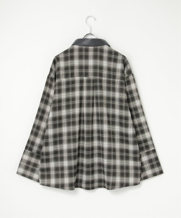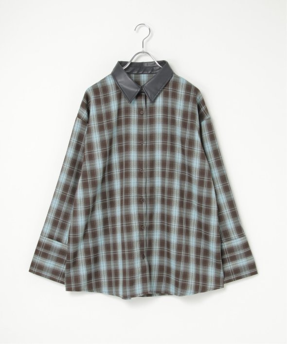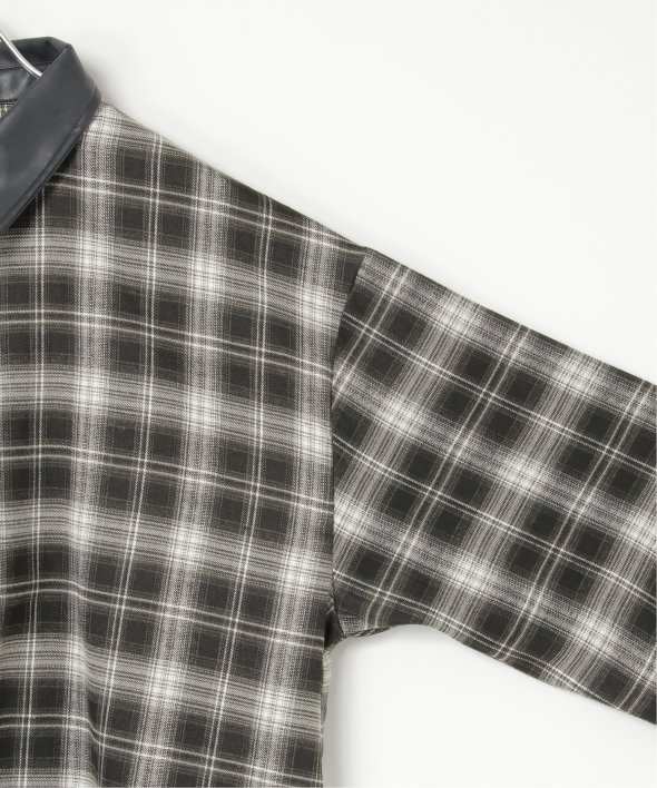 トラッドなチェック柄に合皮の襟を組み合わせた異素材デザインが新鮮なシャツ。
