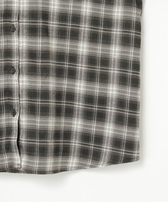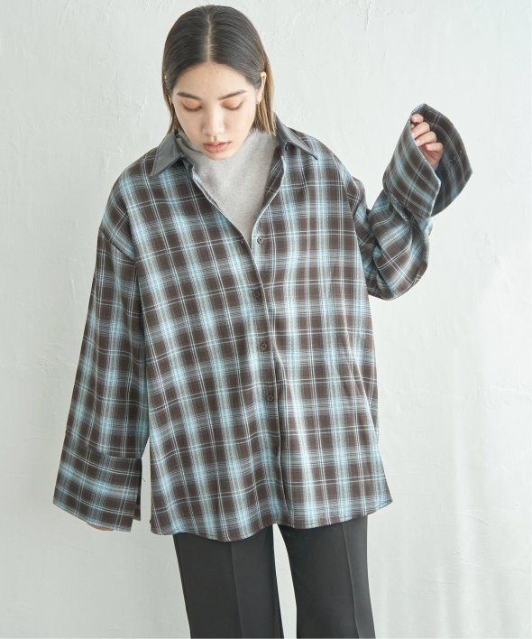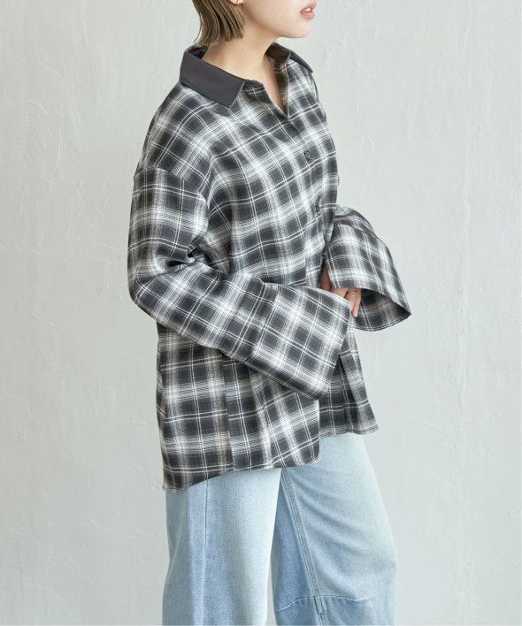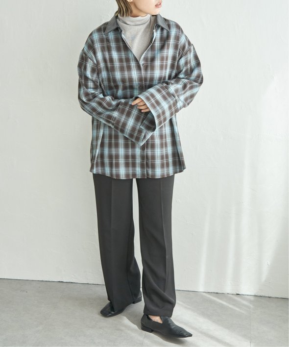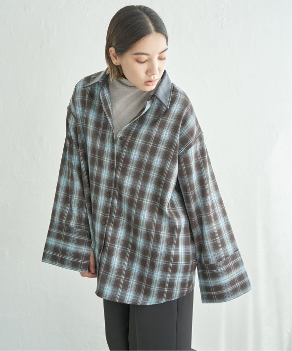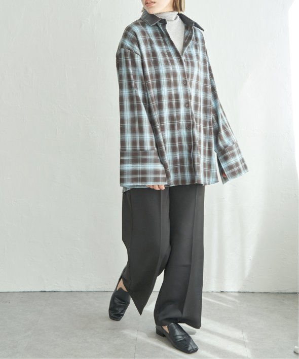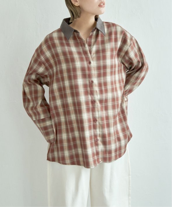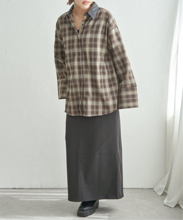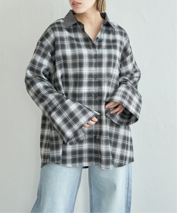 トラッドなチェック柄に合皮の襟を組み合わせた異素材デザインが新鮮なシャツ。