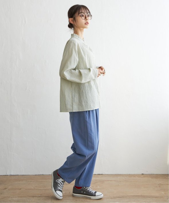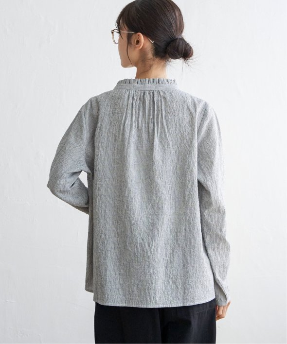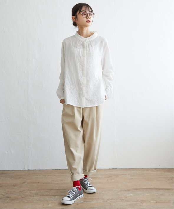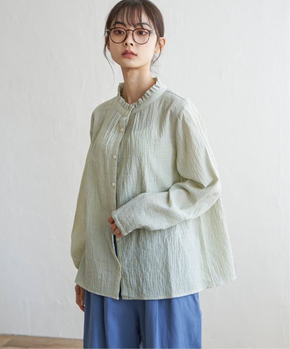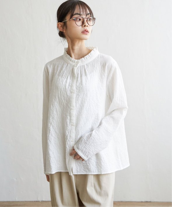 オーガニックコットンを使用した、やさしい着心地の襟フリルブラウス。