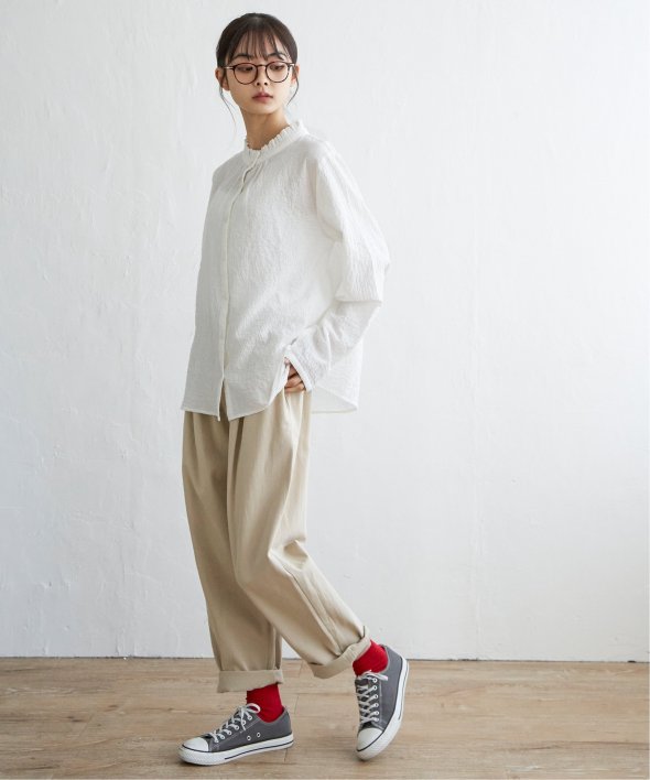 襟フリルシャツ。