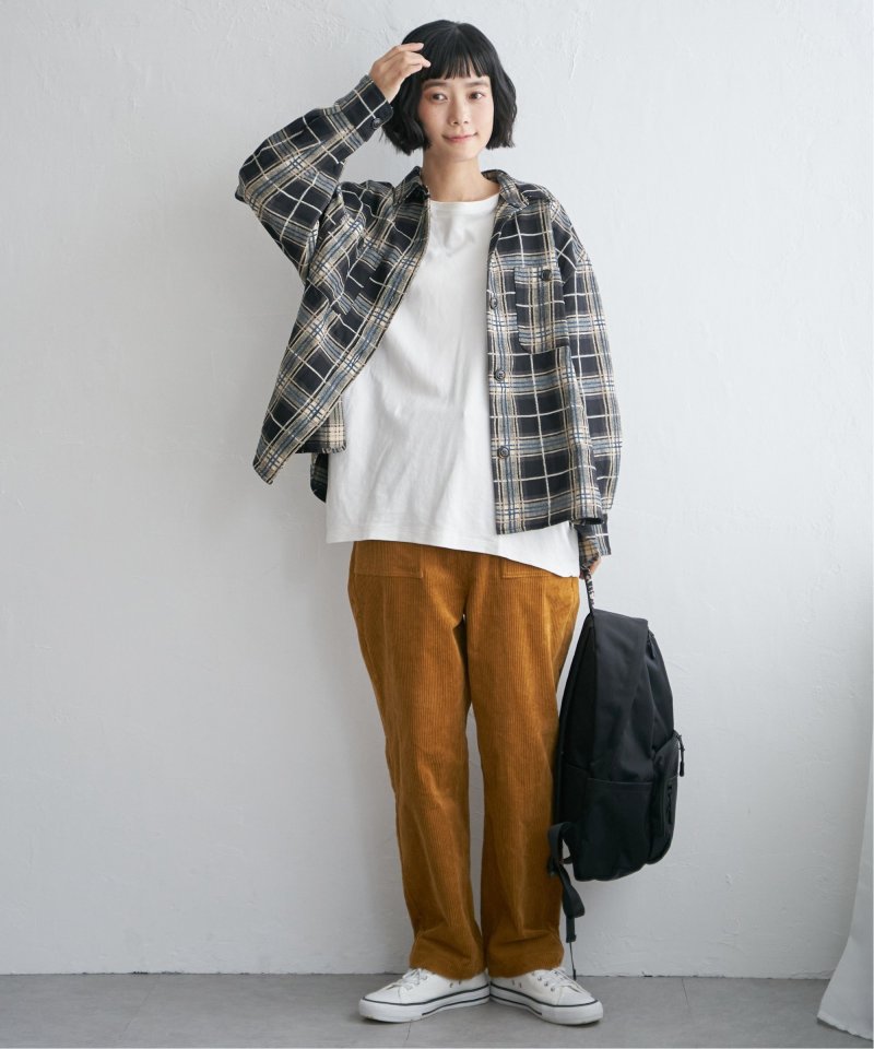 あたたかみのあるモールチェック素材を使用したCPOシャツ。ダブルポケットや前後差のある着丈で、シンプルながらもこなれた印象に仕上げています。着丈は長めでヒップまでカバーできるので、パンツにもスカートにも合わせやすく、レイヤードスタイルにも活躍する一枚です。
