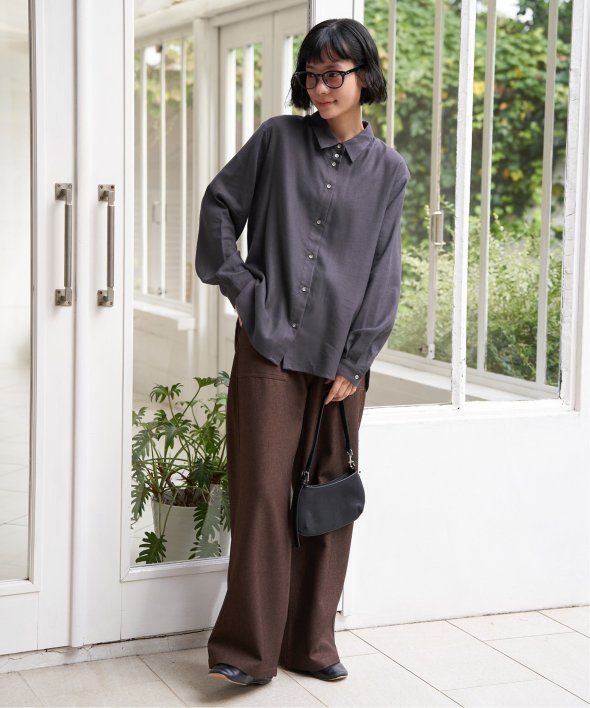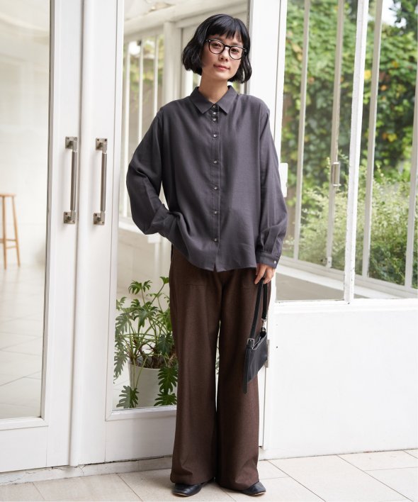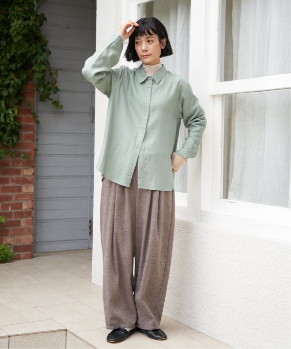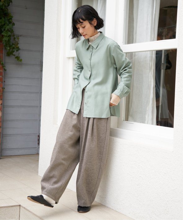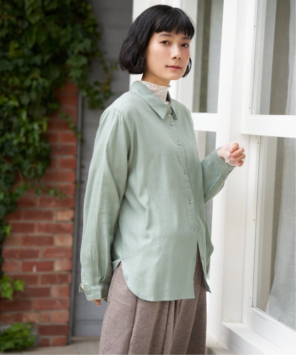 落ち感のある綿レーヨン素材で、さらりとした肌ざわりが魅力のシャツ。