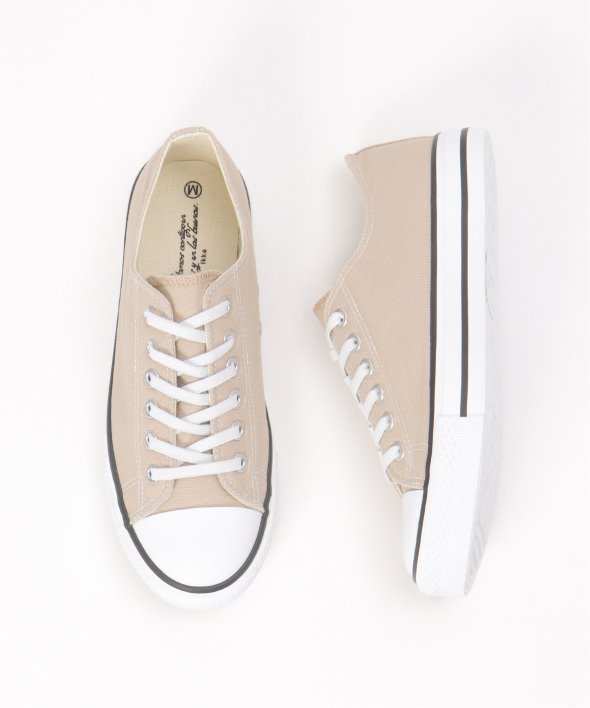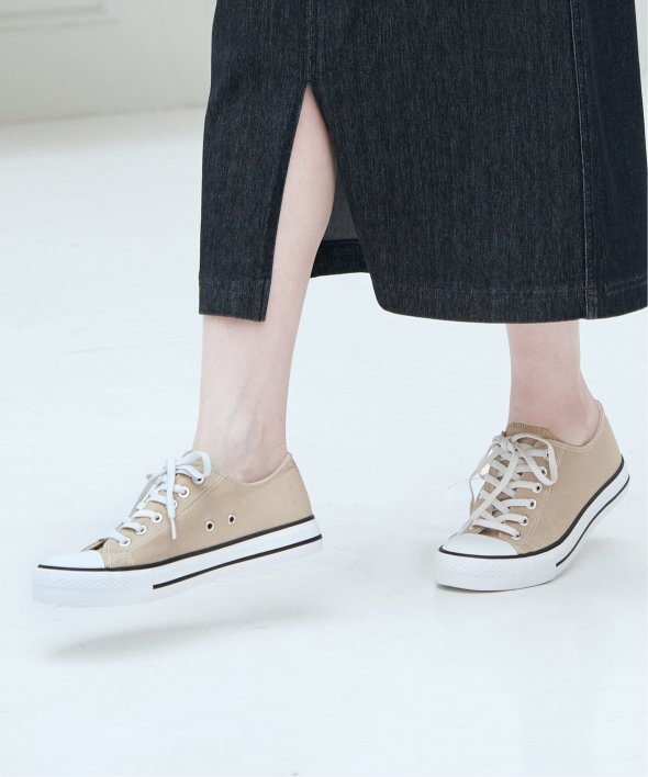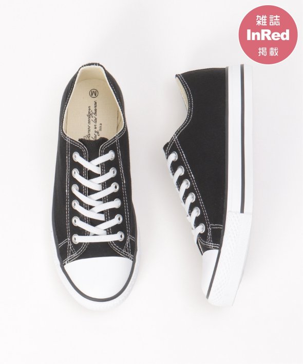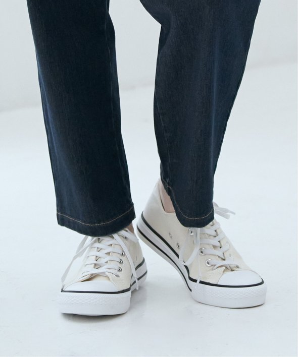 【雑誌InRed(宝島社)5月号掲載】キャンバス生地に撥水加工を施したスニーカー。シンプルなデザインで、デイリーに使いやすいアイテムです。【素材】目の細かいキャンバス生地。【デザイン】伸びる靴紐を使用した着脱しやすい、ベーシックなスニーカーです。【ポイント】・撥水加工・伸びる靴紐仕様で、簡単着脱・両サイドの履き口にゴムが付いていて、紐を外さなくても履ける仕様