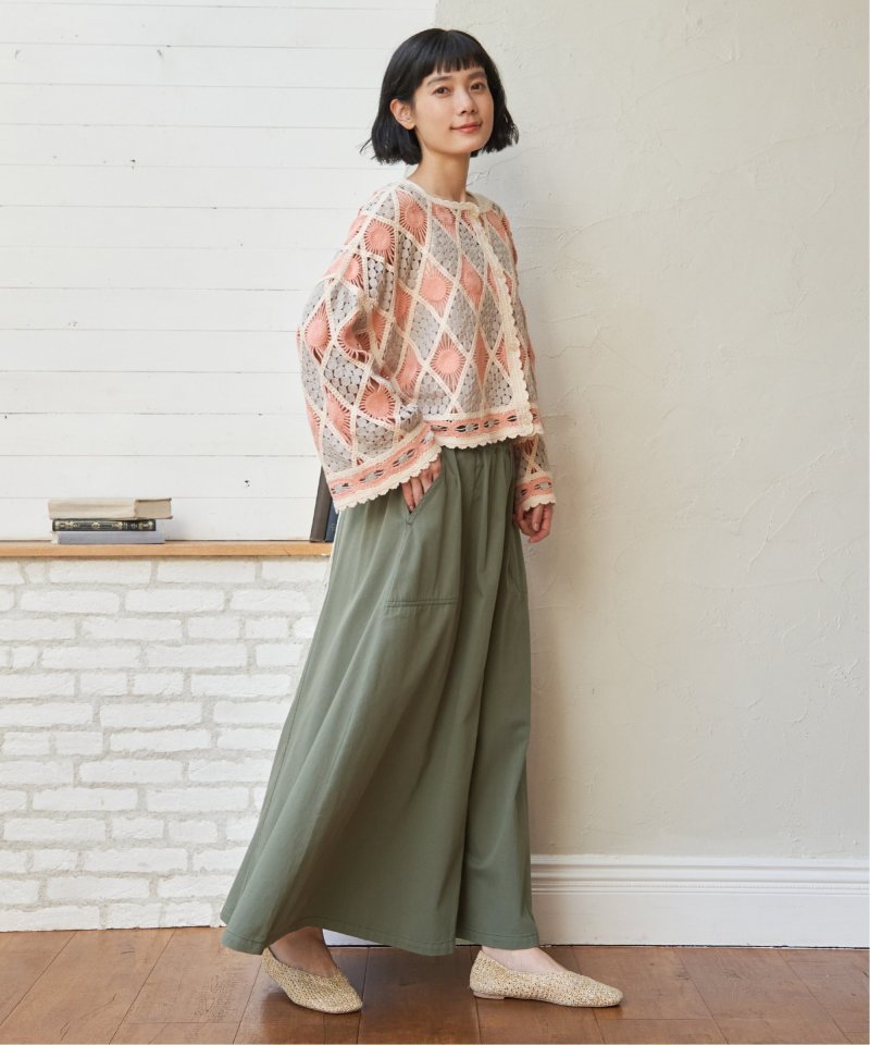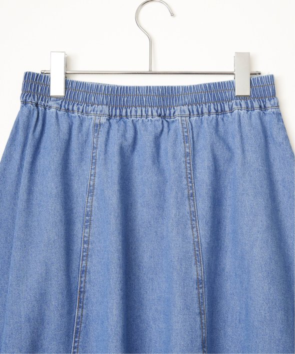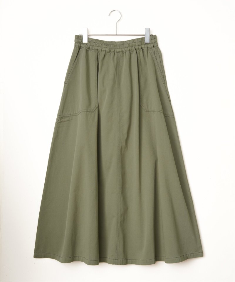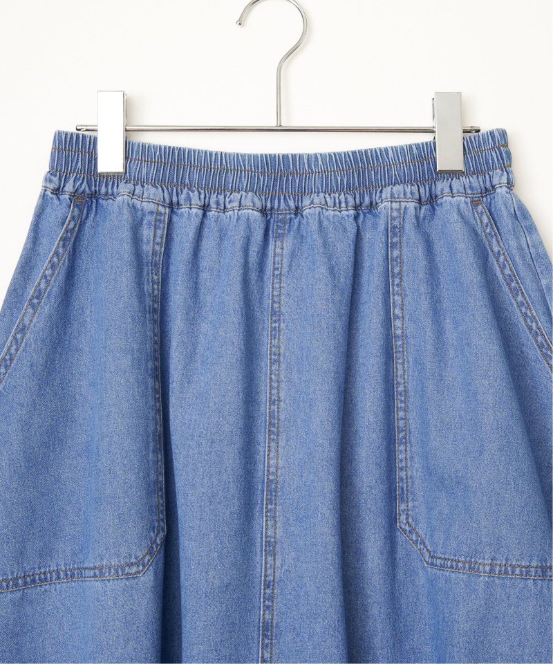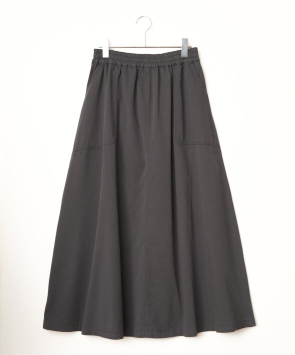 やわらかなデニム、綿ツイルのバリエーションを揃えたフレアスカート。ワークポケットを効かせたデザインが、シンプルな中にほどよいアクセントを添えます。ウエストは総ゴム仕様で、見た目とラクさを両立した一枚です。【素材】やわらかデニムと綿ツイル。【デザイン】ロング丈のフレアシルエット。【ポイント】ワークポケットがアクセントのフレアスカート。ベーシックで着やすいアイテムに仕上げました。ウエストはゴム使いで、内側にドロストもあるのため調整しやすくらくちんです。