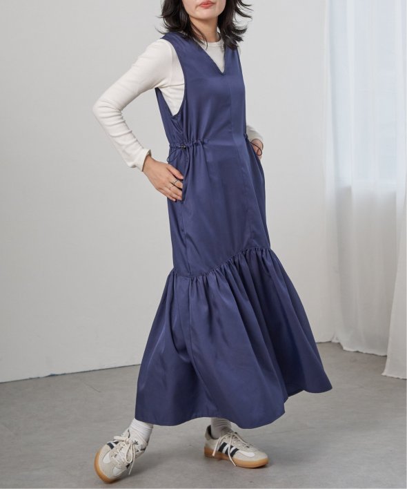 裾はフレアの切り替えで女性らしいシルエットに。