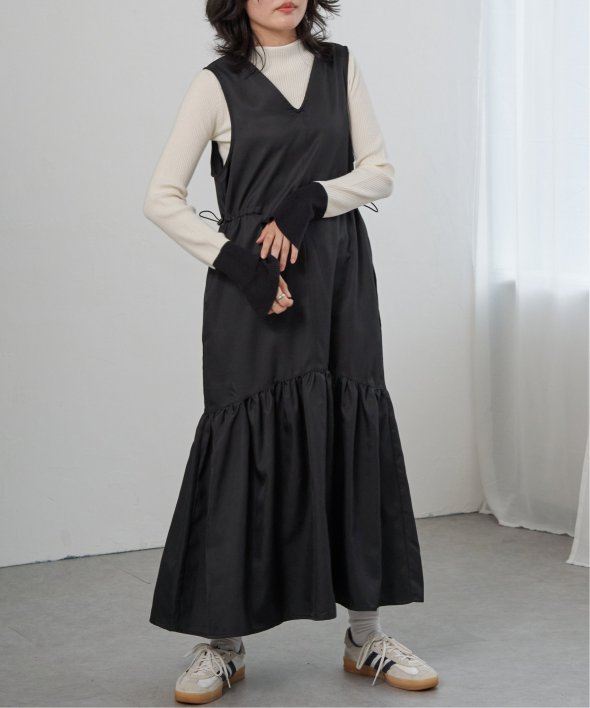 アームホールが広く開いているため、ビッグサイズのトップスにもレイヤードしやすいです。