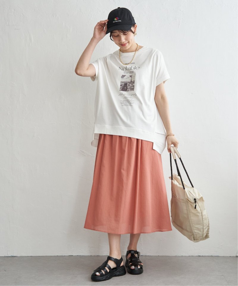 ギャザーフレアで幅広いスタイリングで着回せます。