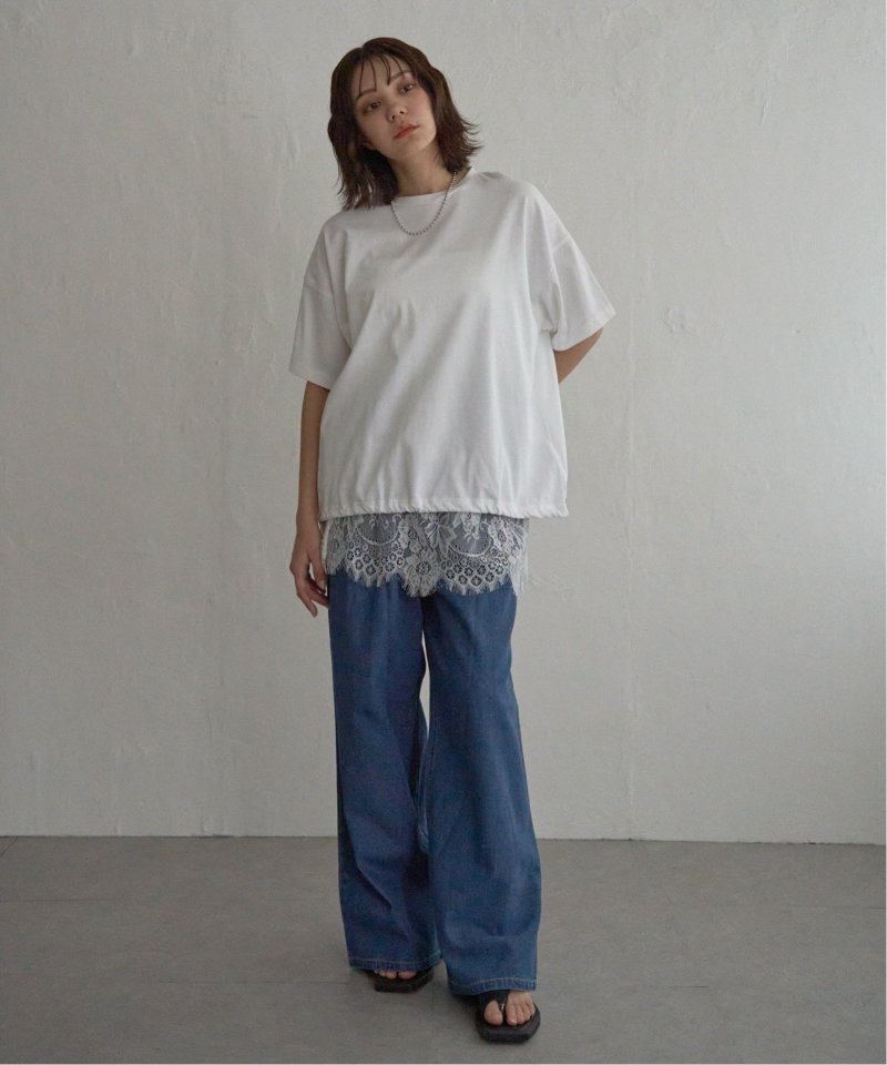 レースキャミソールをインナーに着ているようなスタイリングが簡単にできます!