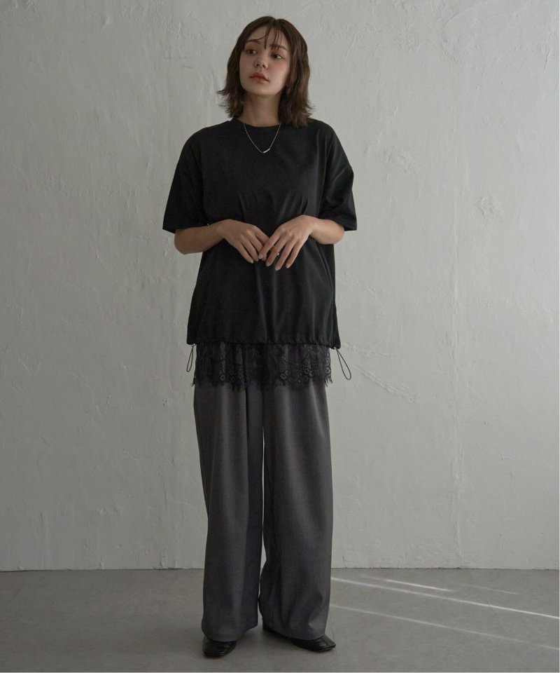 ウエストのゴム仕様で、レイヤード部分の長さも合わせるトップスの長さに合わせて調節可能。