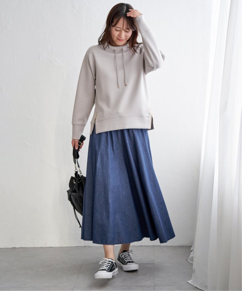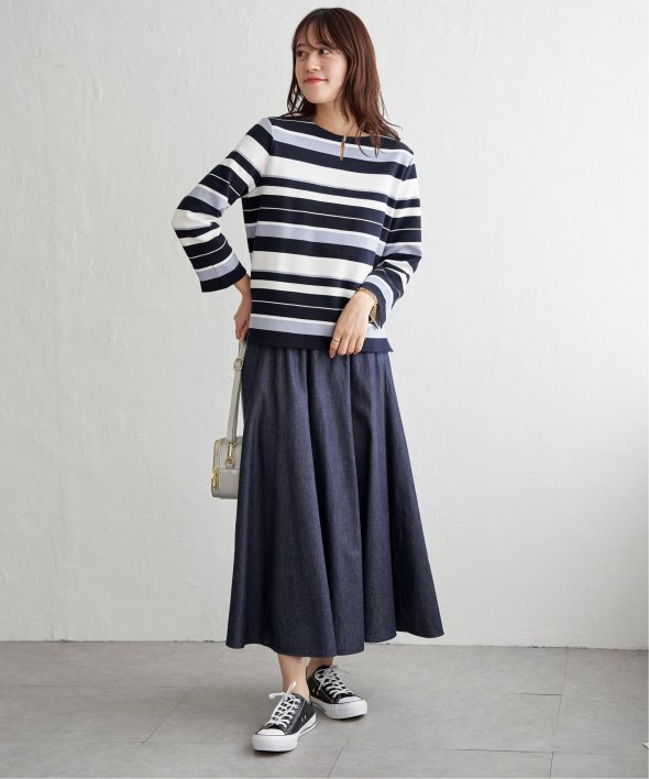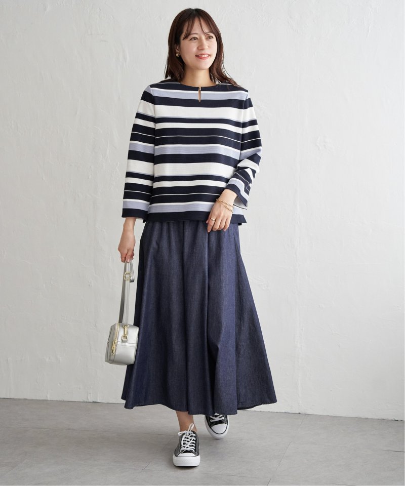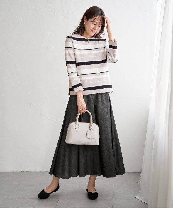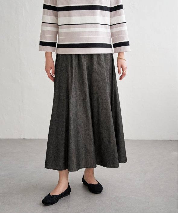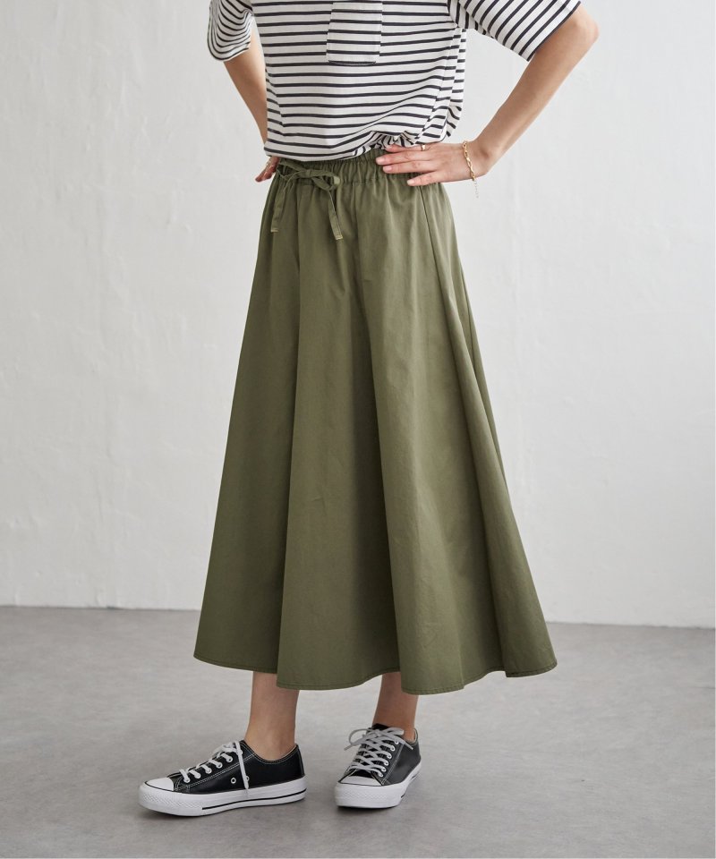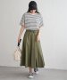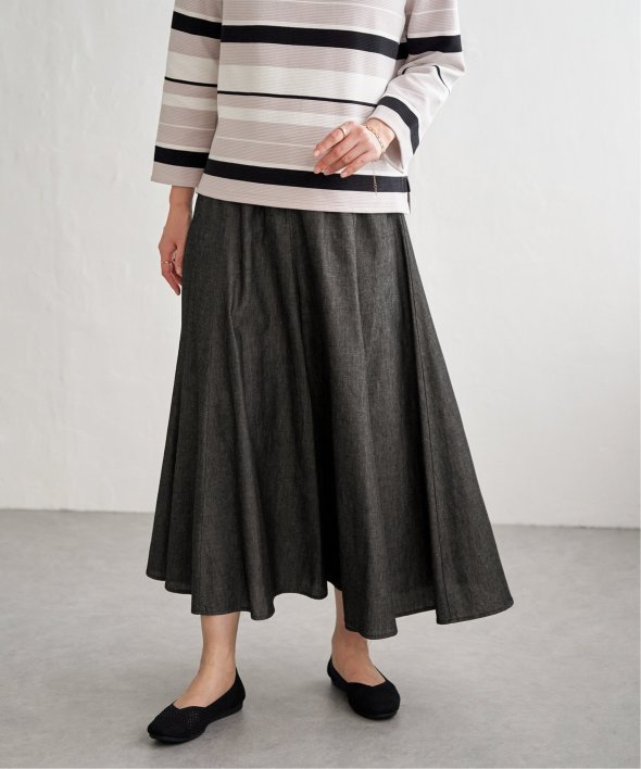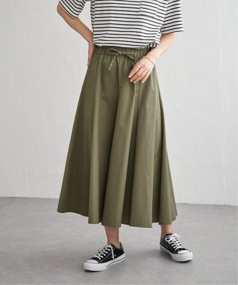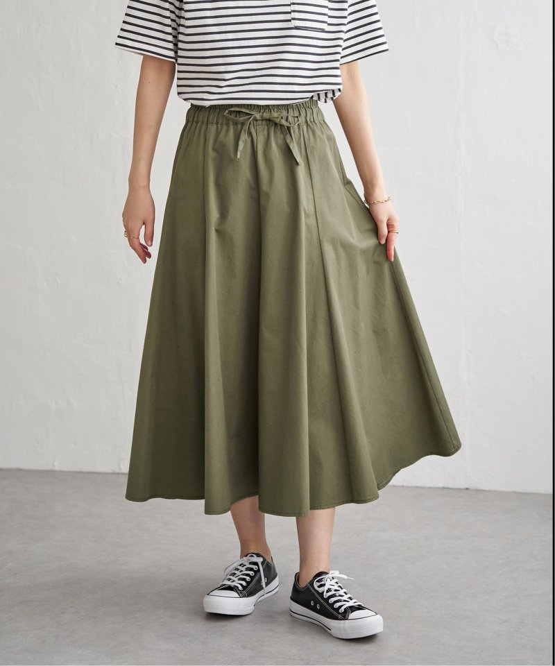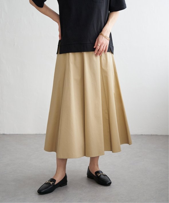 ハギを8枚入れることでウエストまわりがすっきり見えるふんわりフレアースカート。