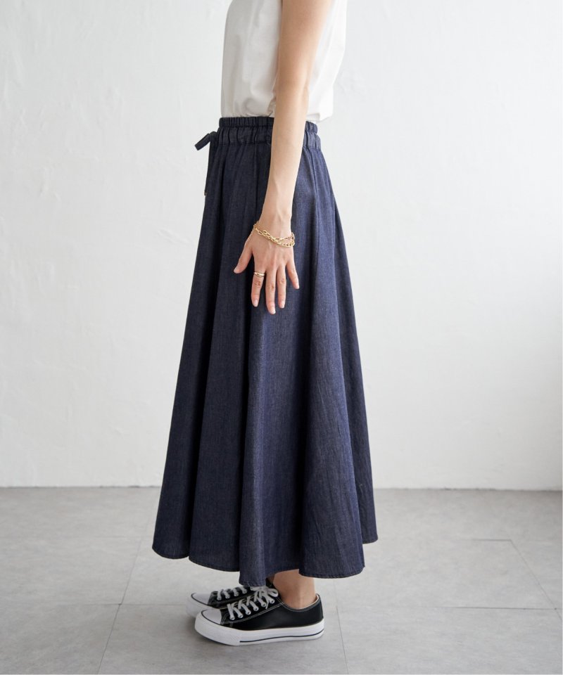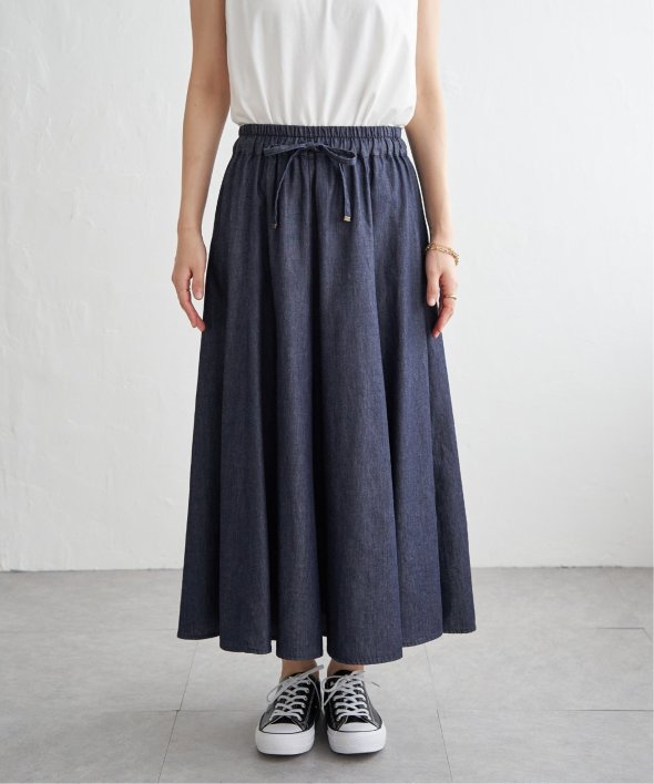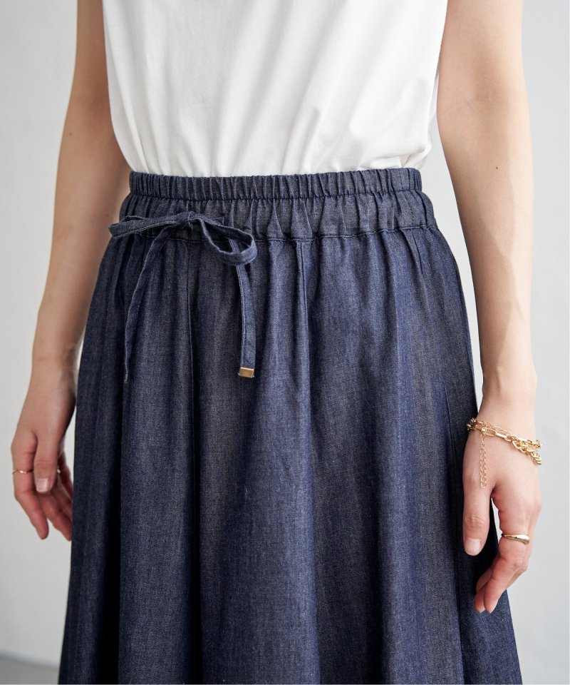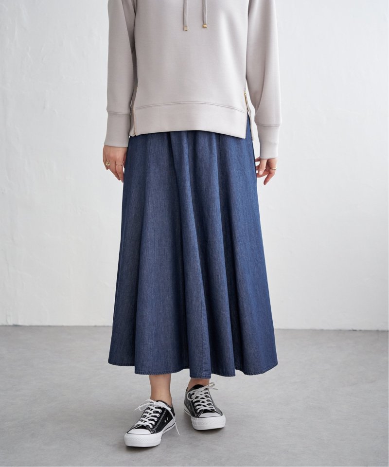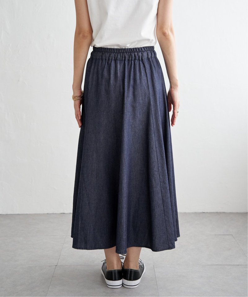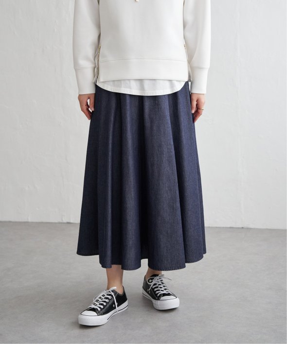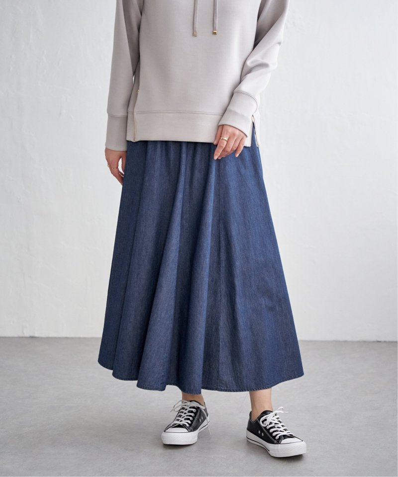 ・軽さのあるデニム生地できれいなフレアーデザイン