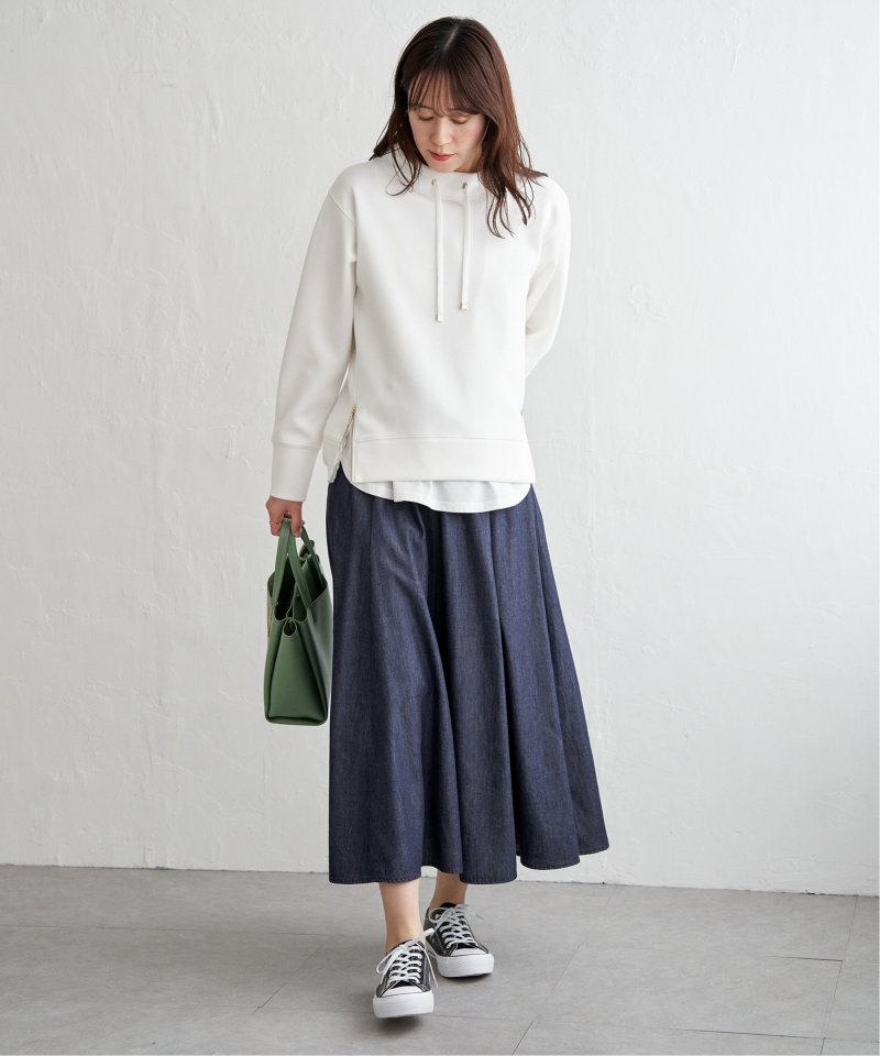 ・おなか回りがすっきりとしたシルエットで、さまざまなトップスとも相性の良いデザイン