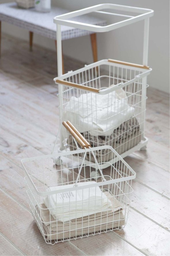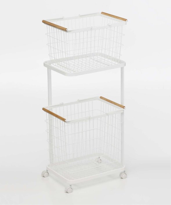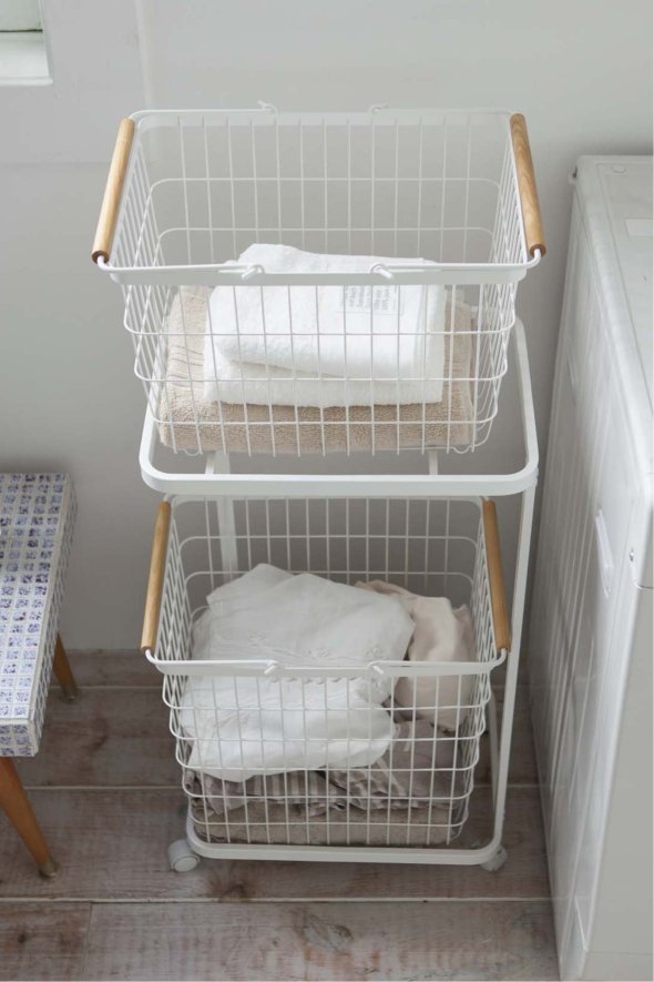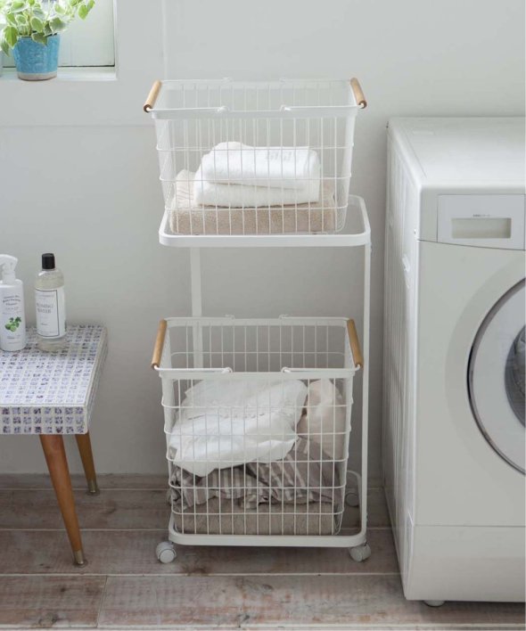 ランドリーバスケットを上下に置けるランドリーワゴンです。