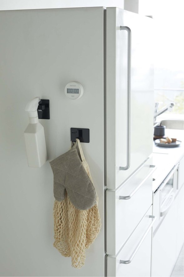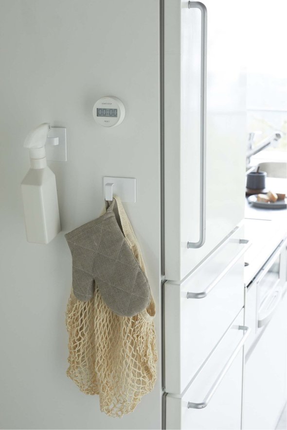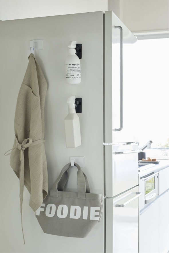 洗濯機や冷蔵庫に取り付けて、スプレーボトルやハンガー、ミトンやエプロンなど、いつも使う物の収納に便利です。