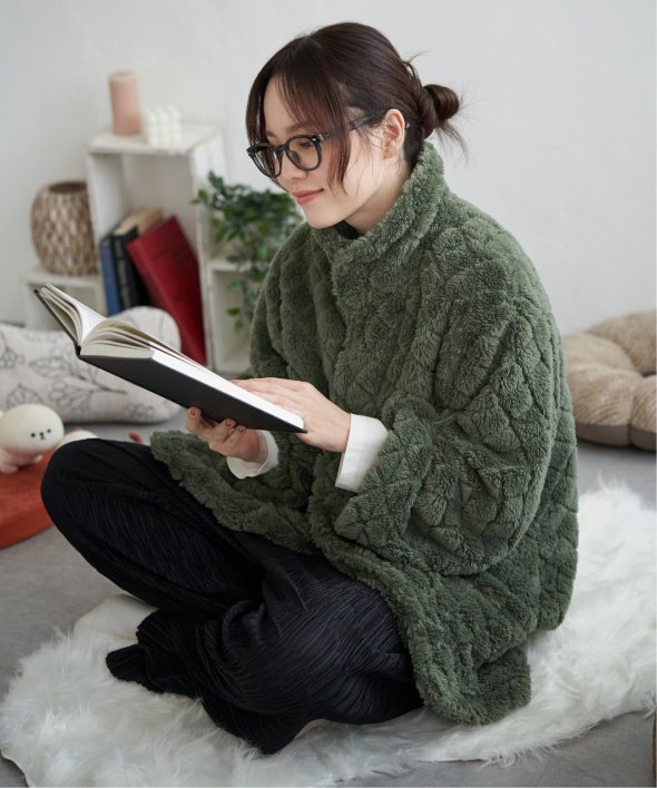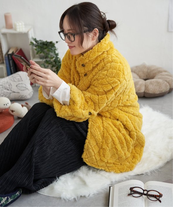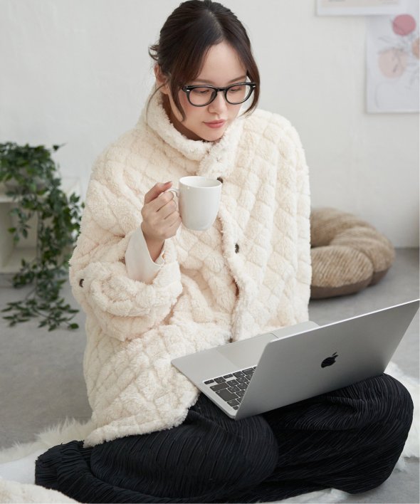 寒い季節にやさしく包み込んでくれる『キルンケット』は、まさしく”着るブランケット”。まるでブランケットに包まれているような、リラックスタイムにピッタリのアイテムです。【素材】ふわふわ起毛生地。【デザイン】袖をまくってボタンを留めておけるため、家事をする際も邪魔にならず、在宅・テレワークなどにもオススメです。スマホなどを入れておけるポケット付き!【ポイント】“着るブランケット”、キルンケットのガウンタイプ。リラックスタイムにピッタリのアイテムです。