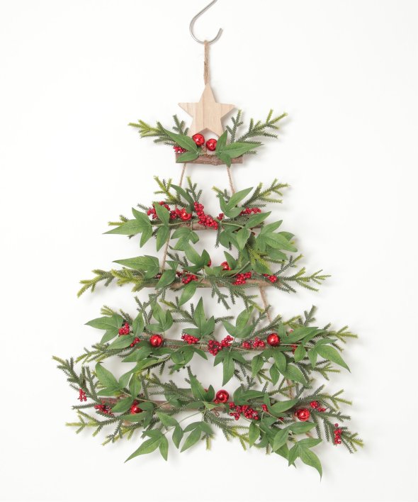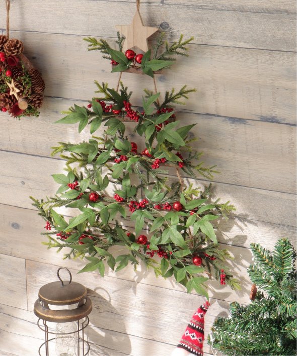 ナチュラルテイストなクリスマスの飾り付けを楽しめるツリーハンガー。壁に掛けてお楽しみいただく商品です。※一点一点に微妙な色・サイズ・風合いなどの違いがございます。