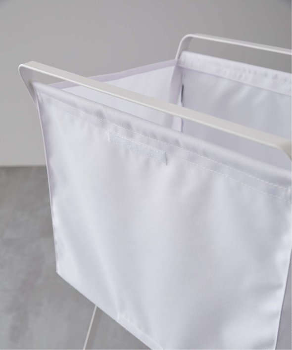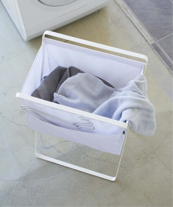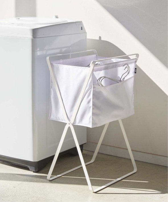 バスケットに高さがあり、洗濯物の出し入れの際に腰への負担が軽減される、高床式ランドリーバスケット。