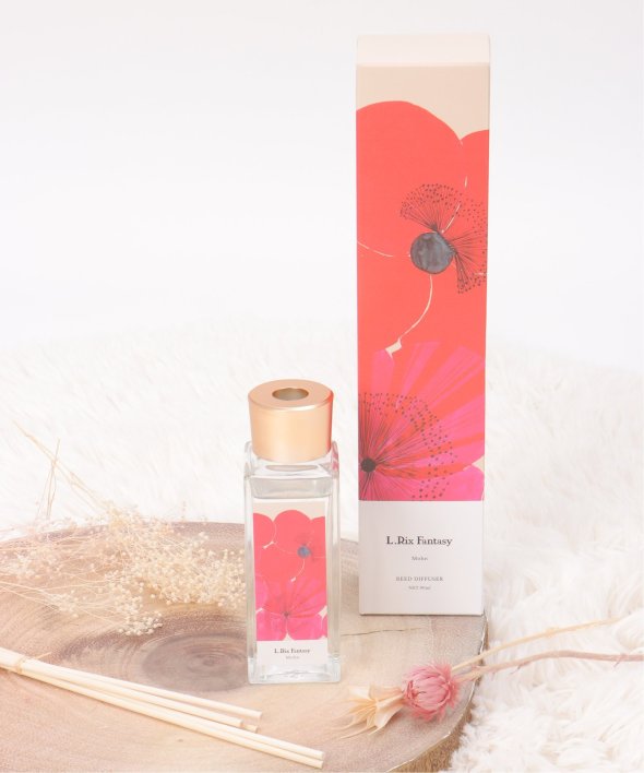 リチという色鮮やかな世界をイメージした、かわいいパッケージのリードディフィーザー。