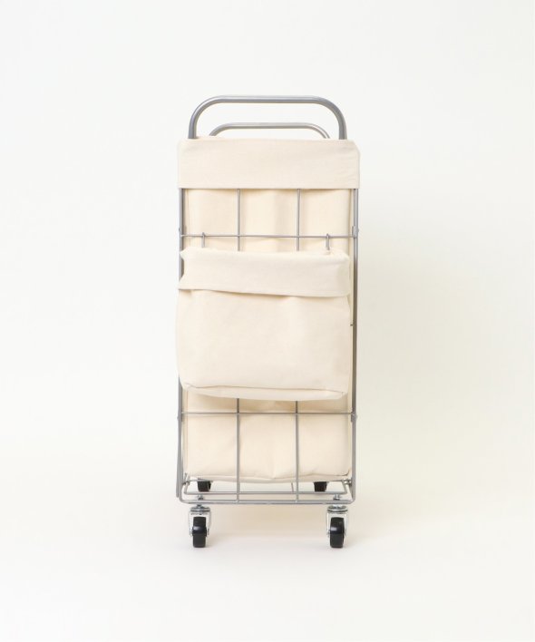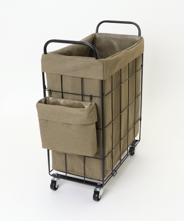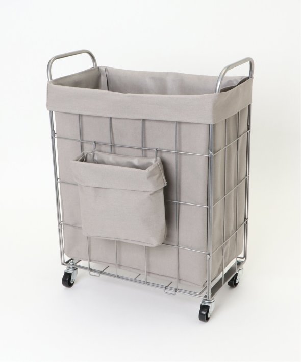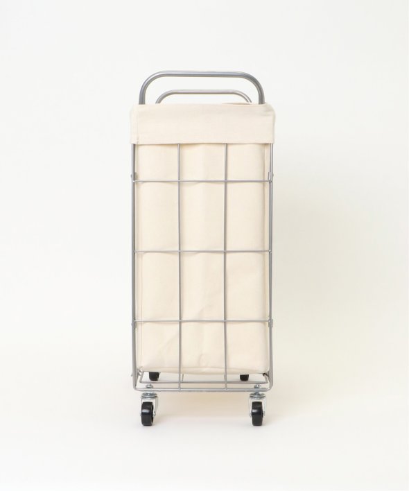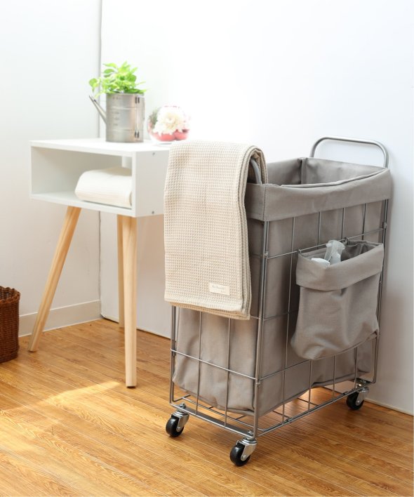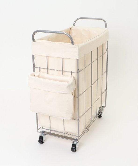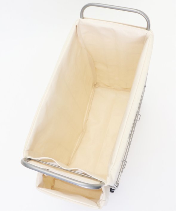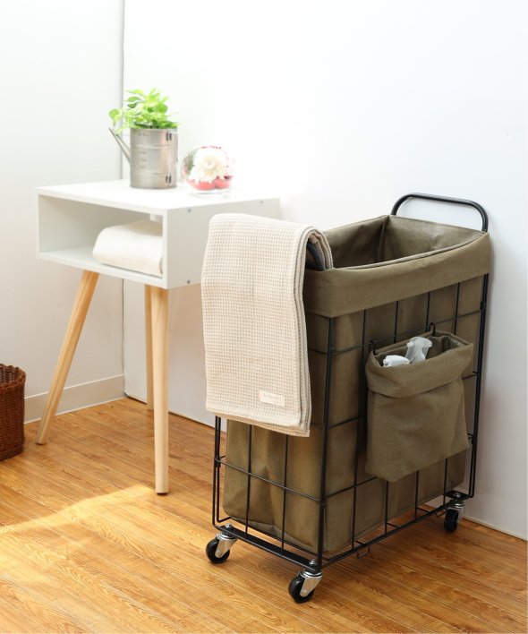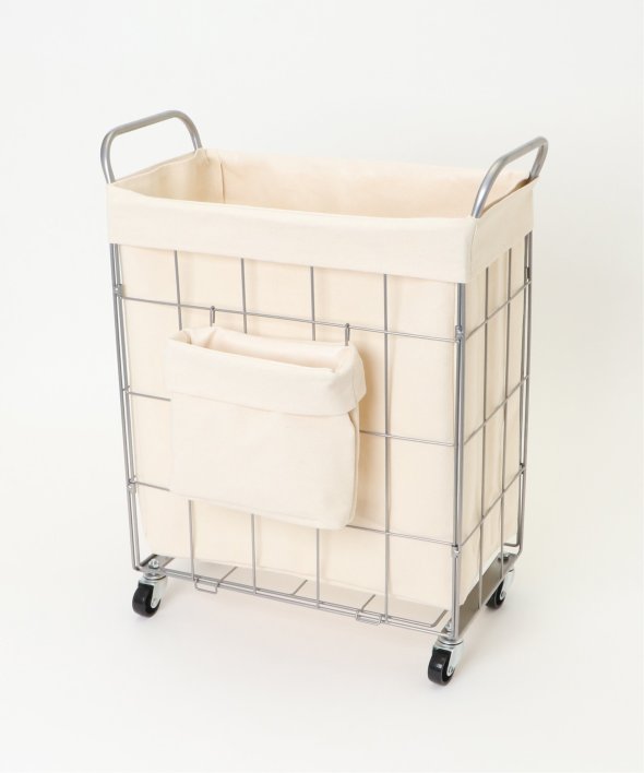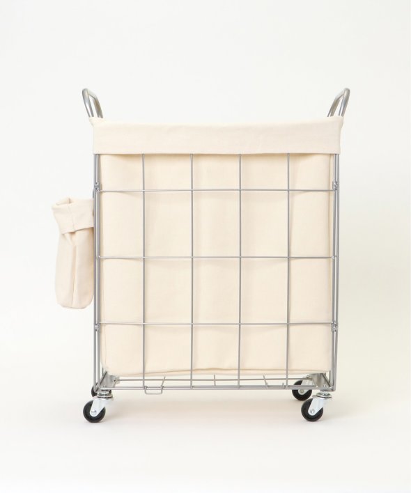 ランドリーバスケット スクエア キャスター付き38リットルイヤーは軽くて丈夫なスチール製、ファブリックカバーは汚れが付着しづらいラミネート加工を施しています。