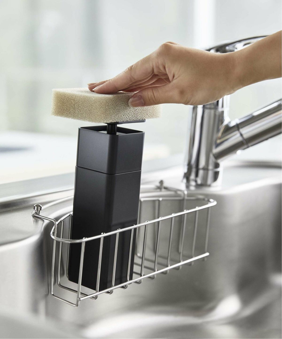 片手で簡単!スポンジに洗剤をつけられる