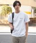 左胸と背中にプリントの入ったガゼット付き半袖Tシャツ。