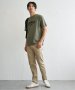 胸にプリント、袖口に刺繍が入ったTシャツ。