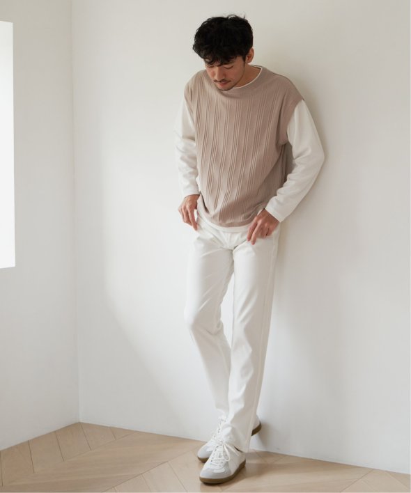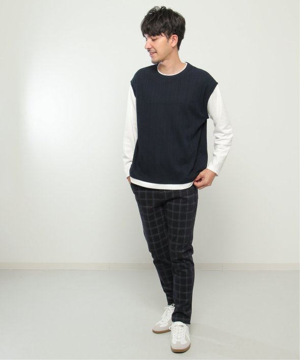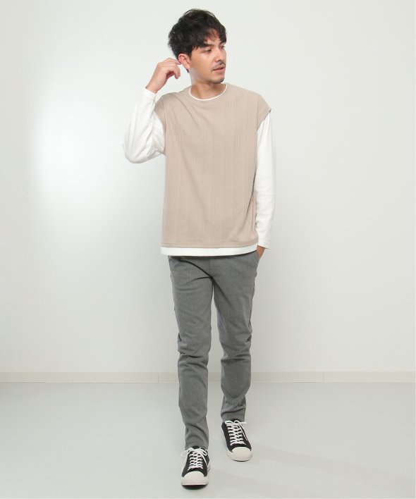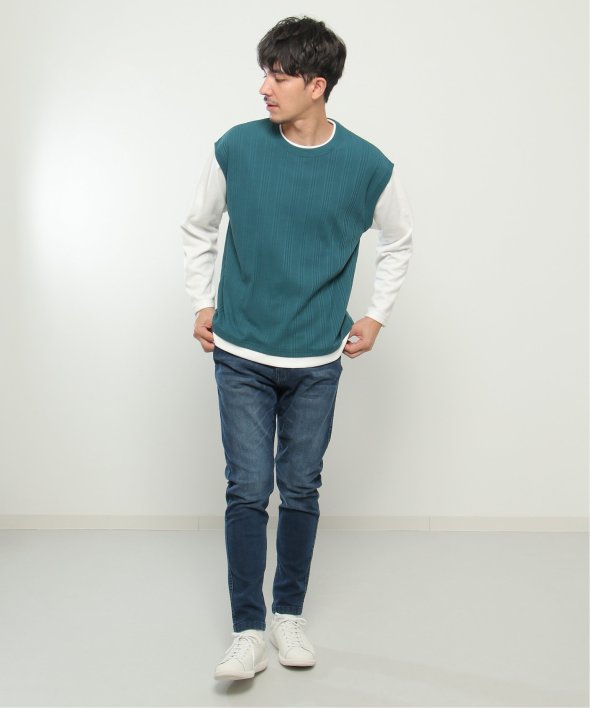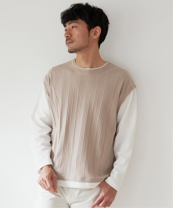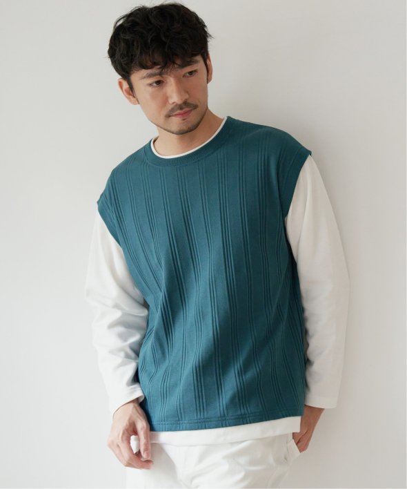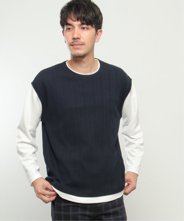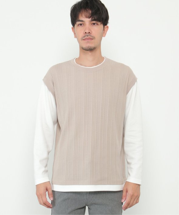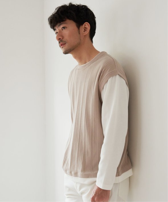 ベスト+長袖Tシャツのレイヤードスタイルがこれひとつで完成!