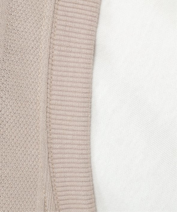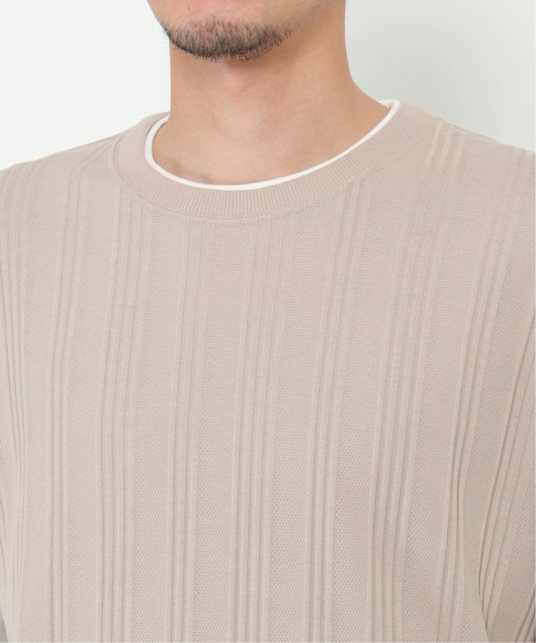 鹿の子とストライプジャガードを組み合わせた編地と袖部分はポンチ仕様。