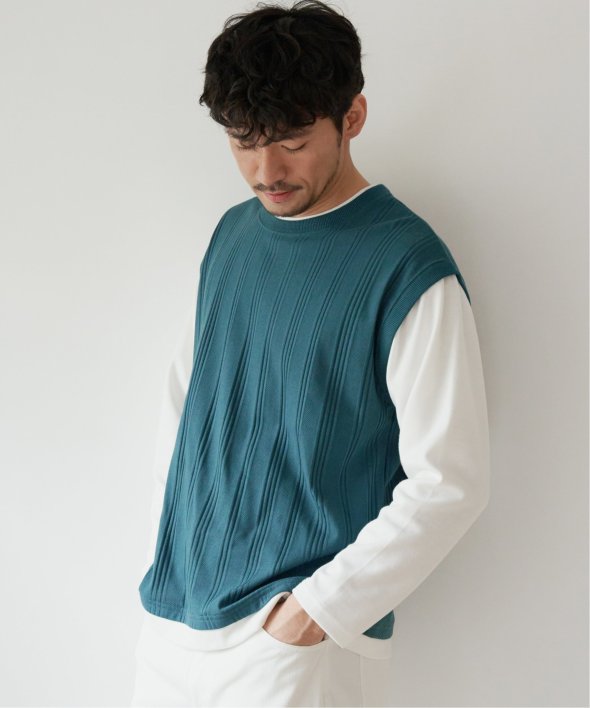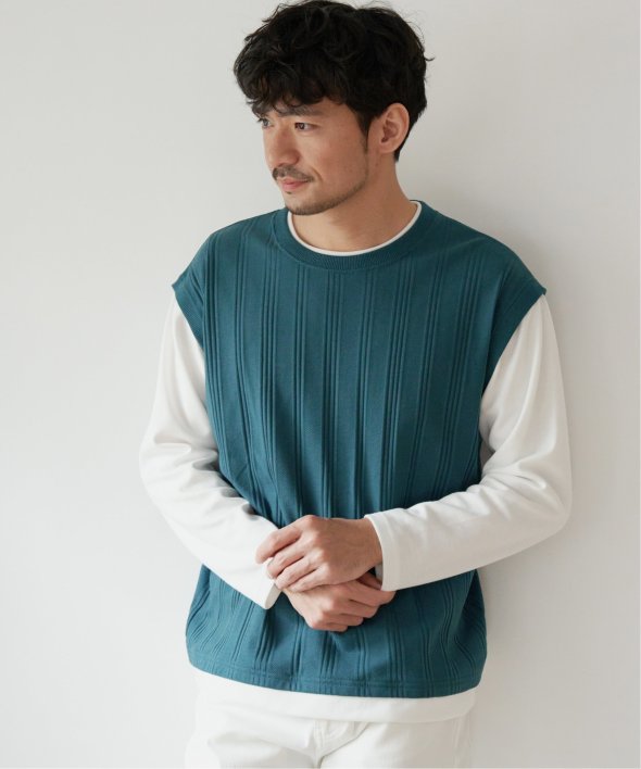 ベスト部分はジャガード織りで、ランダムに入れたストライプ状の凹凸が特徴。